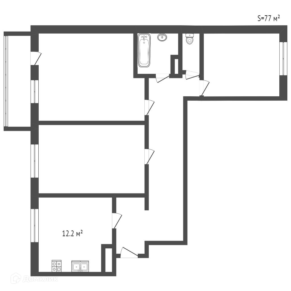 Общая площадь 77 м2