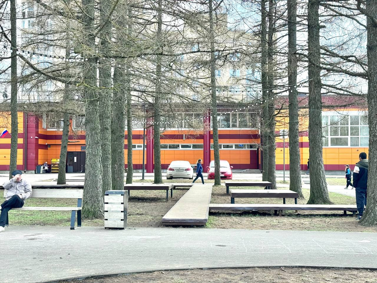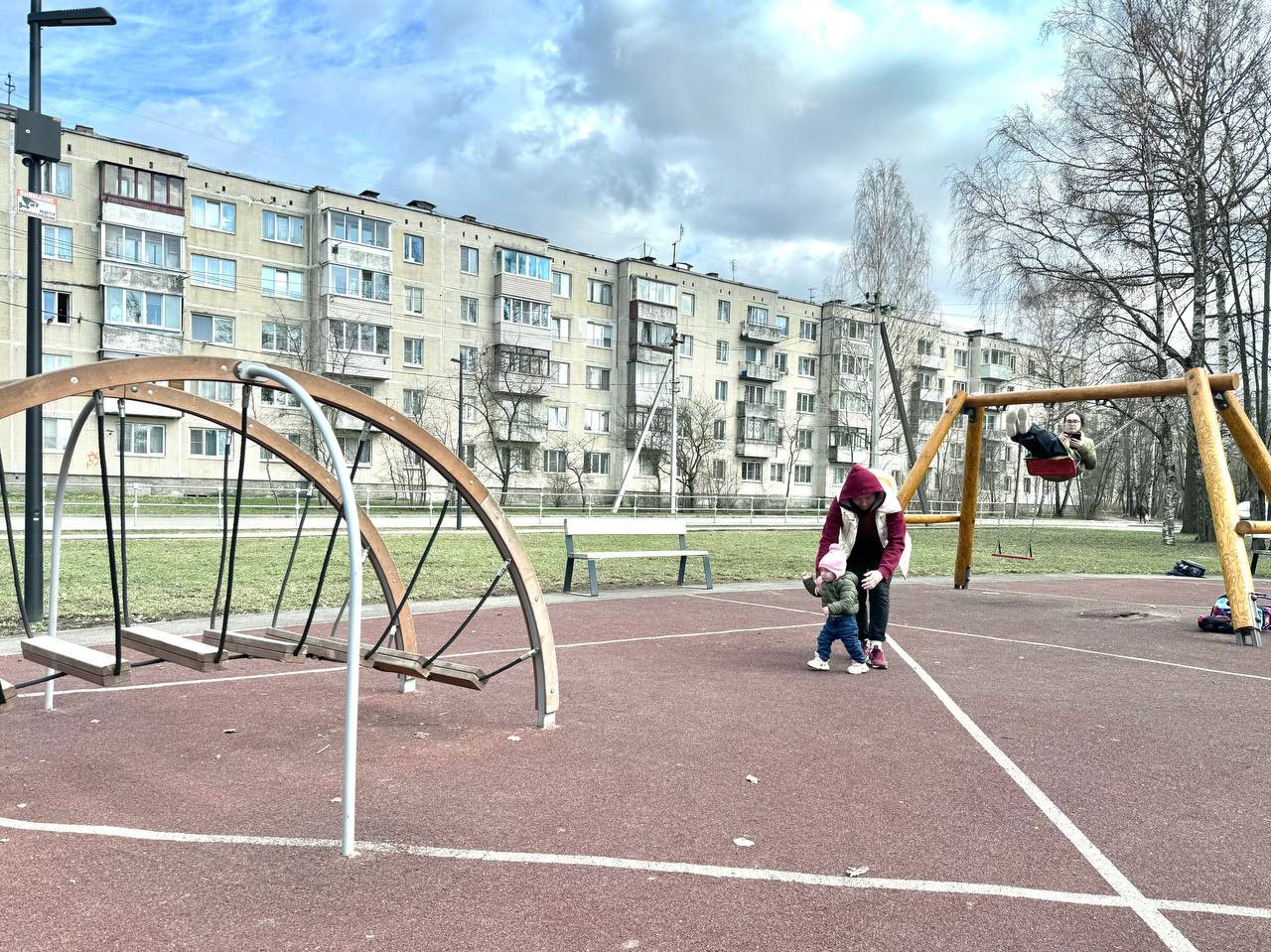 —Сама площадь оборудована зонами для отдыха, пешеходными дорожками, качелями, детской площадкой, тренажерами.