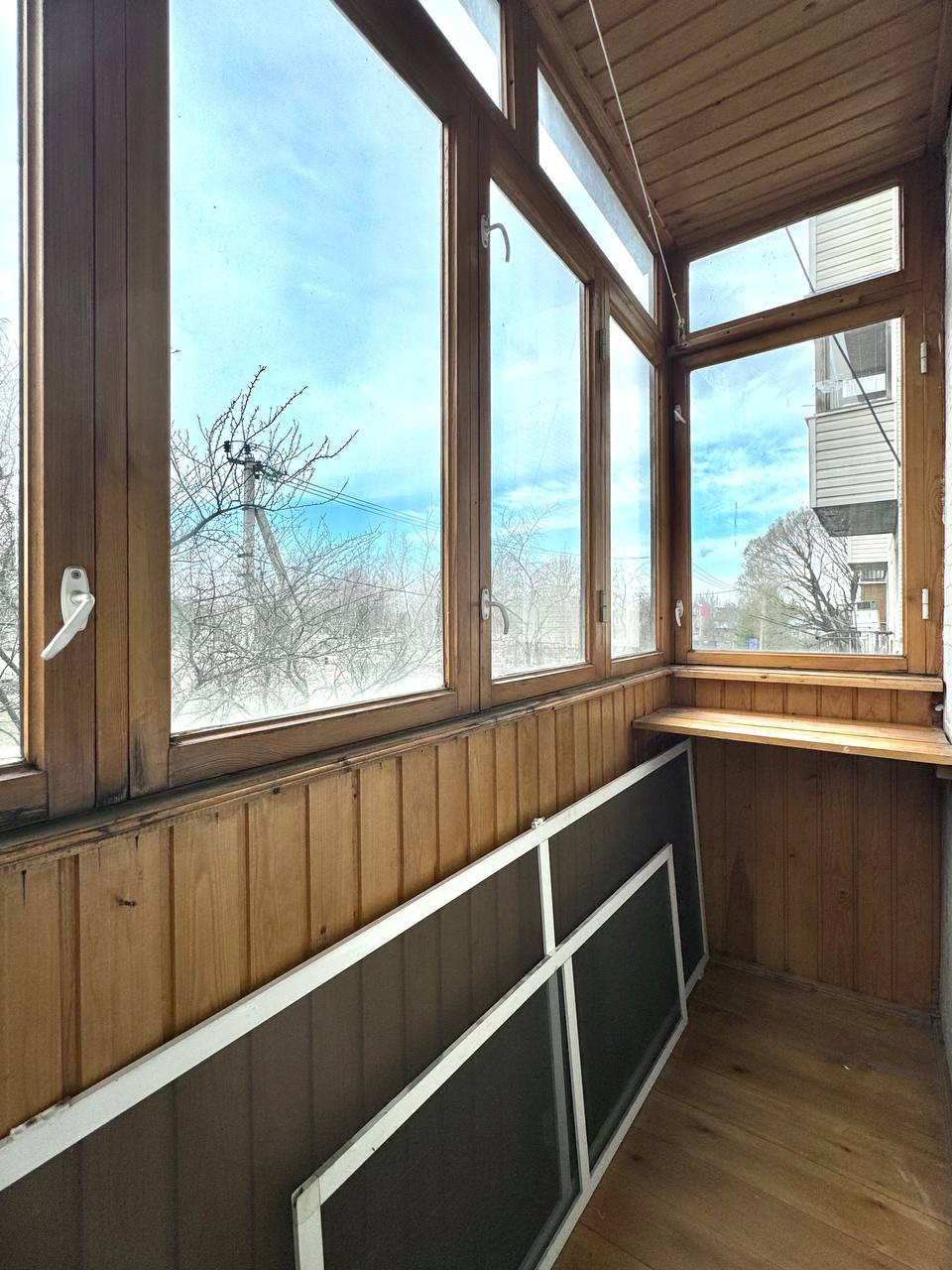 —Лоджия обшита деревом. Приятным бонусом в ней сделаны специальные палочки на которых можно готовить саженцы к дачному сезону или выращивать цветы
