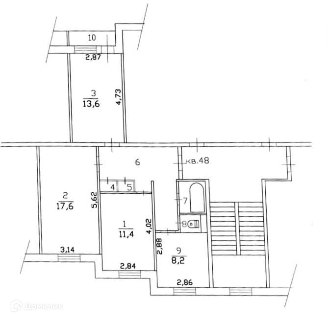 Жилая площадь 42.6 м2