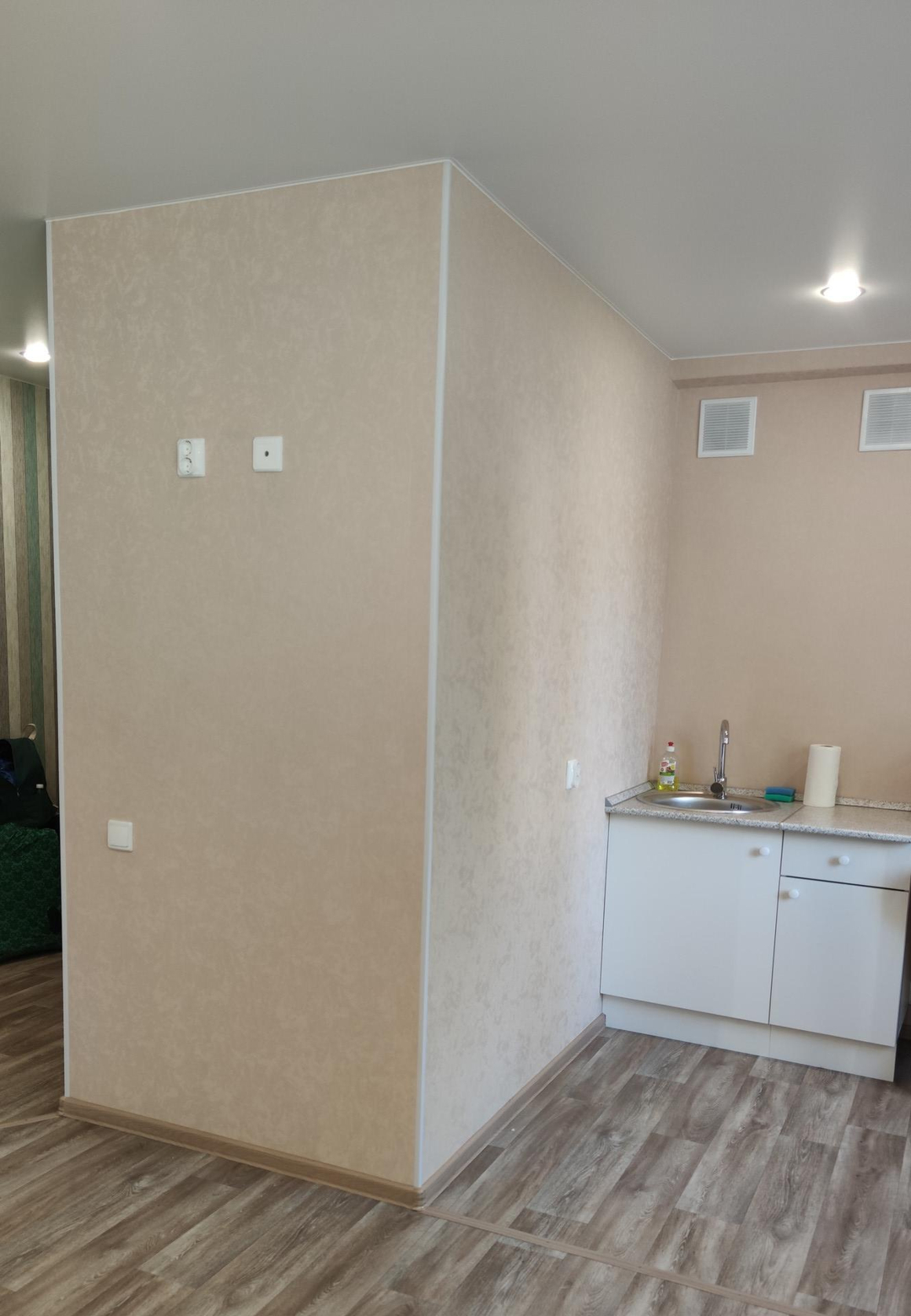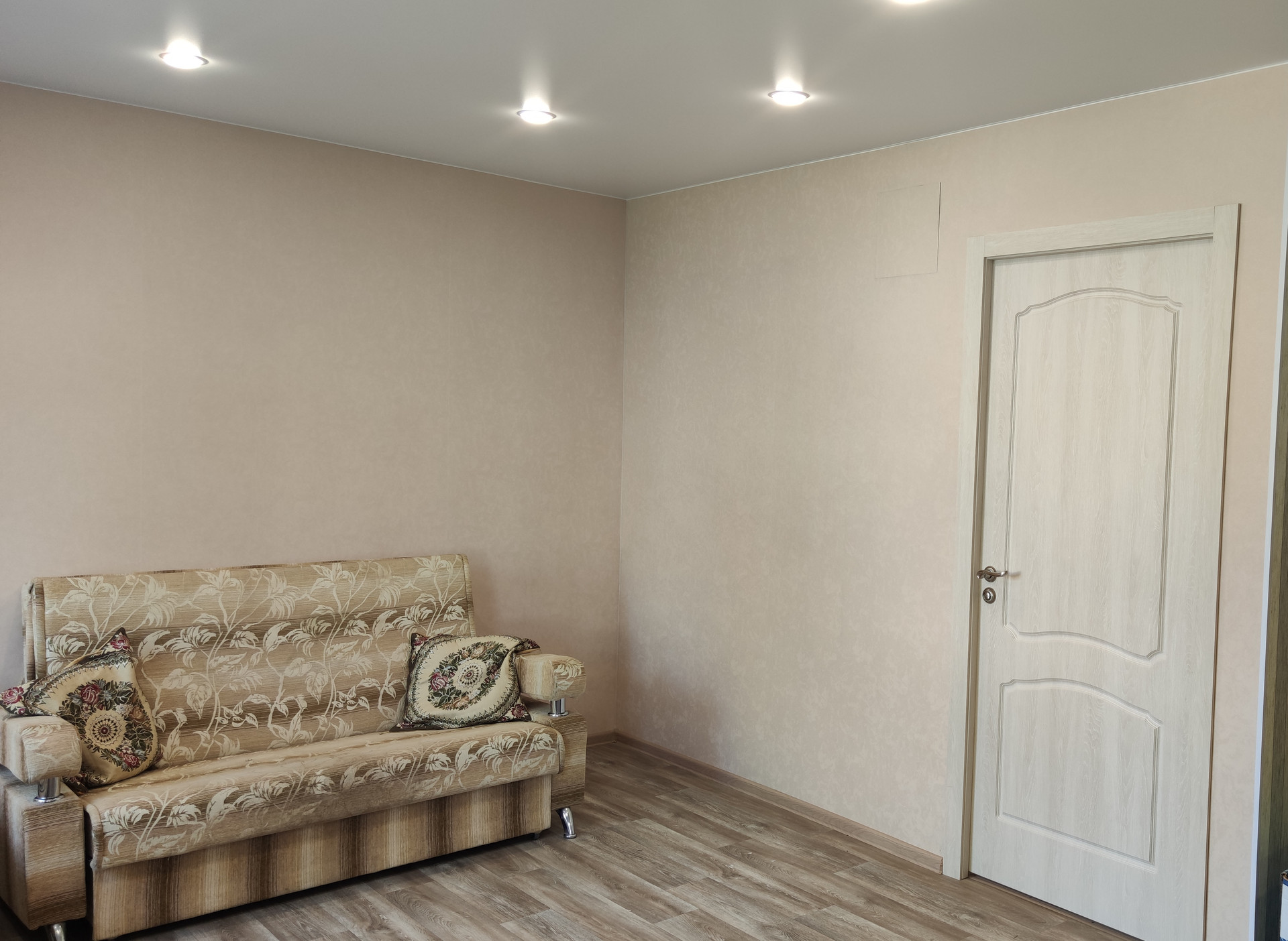 Продается небольшая светлая теплая двухкомнатная квартира на первом этаже общей площадью 35,61 кв.м. (жилая площадь 23 кв.м., сделана перепланировка - кухня и комната объединены, санузел совмещённый). В квартире сделан качественный капитальный ремонт (делали для себя). Поменяна вся электрика, сантехника, трубы и батареи, окна ПВХ, двери, полы залиты цементом и выравнены, натяжные потолки, стены выравнены, счетчики. Из мебели в квартире есть две новые тумбы на кухне, новая тумба под раковину в санузле, диван б/у. Установлен водонагреватель. В квартире после ремонта никто не жил.
