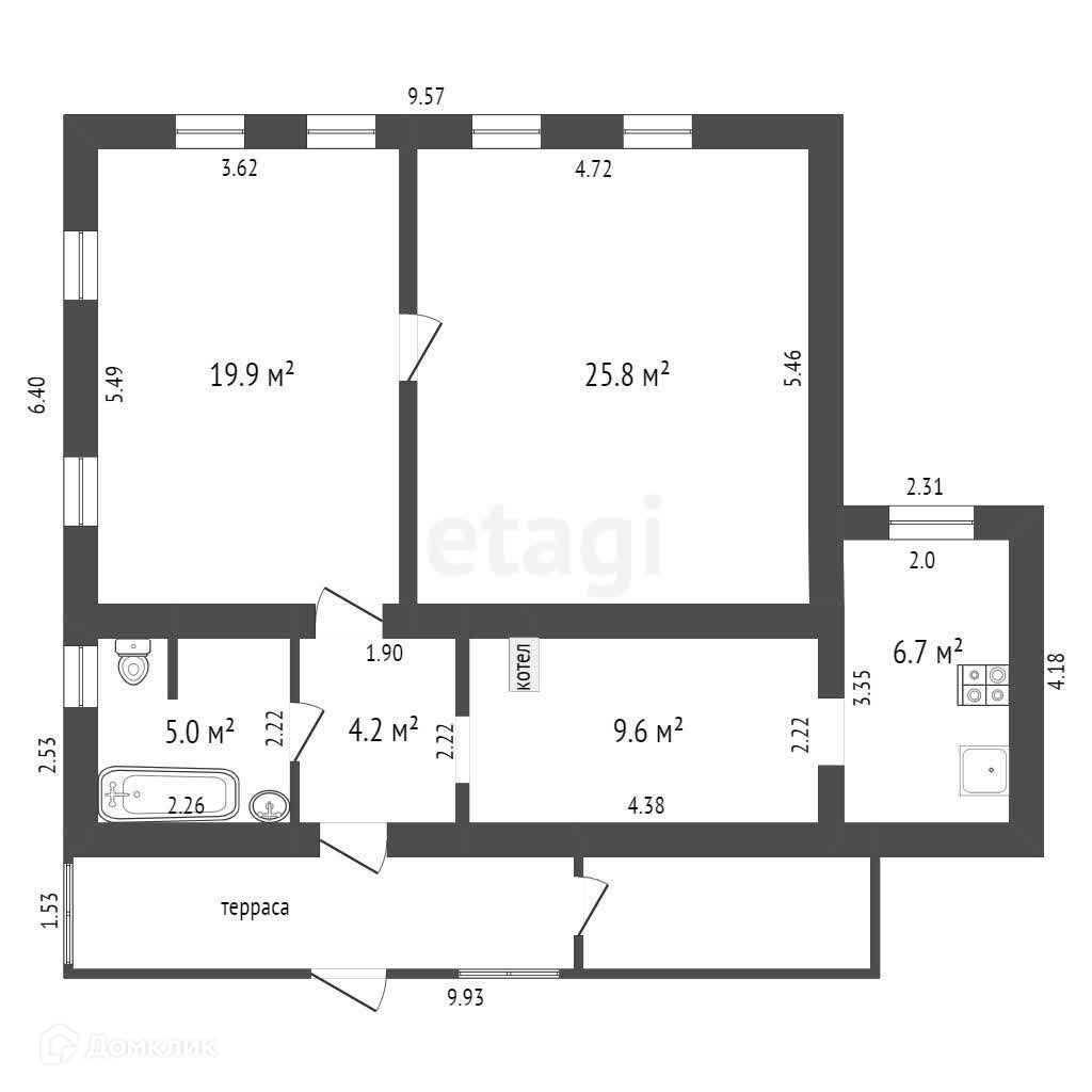 Общая площадь дома 72 м.кв.
