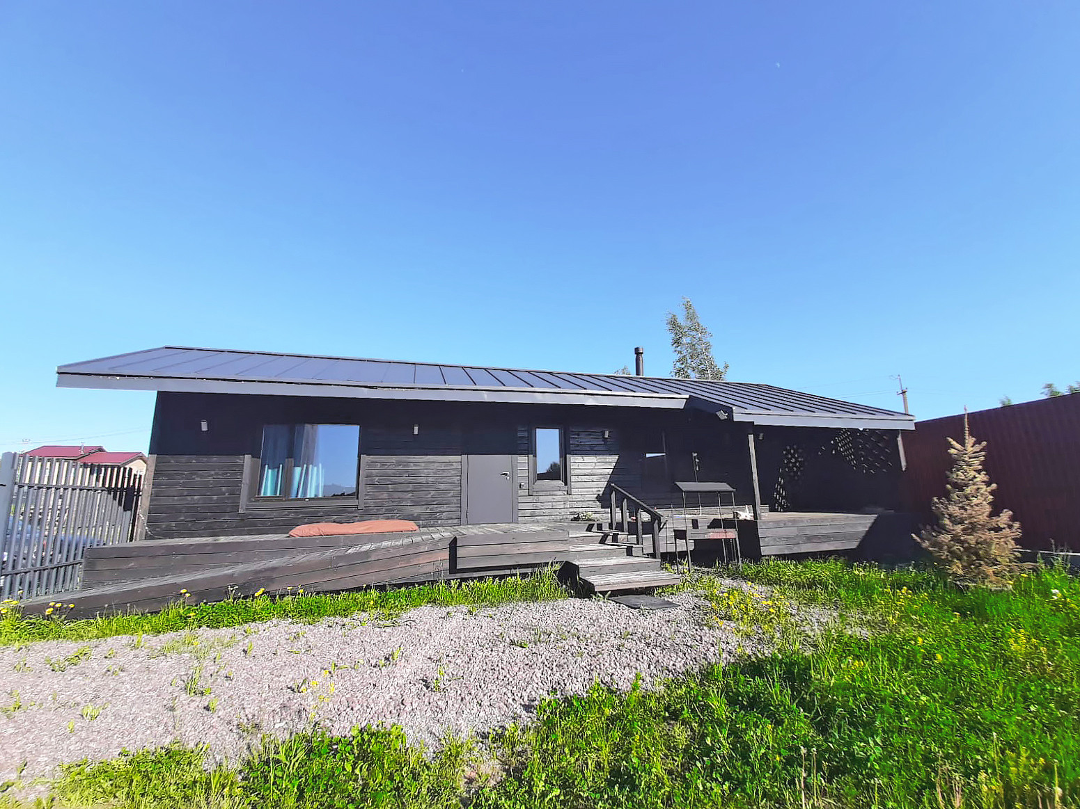 На участке 11,10 соток есть дополнительные постройки: одноэтажный дом с баней, обеспеченный всем необходимым для комфортного проживания гостей и небольшое одноэтажное строение, для хранения хозяйственного инвентаря. Участок огорожен по периметру.
