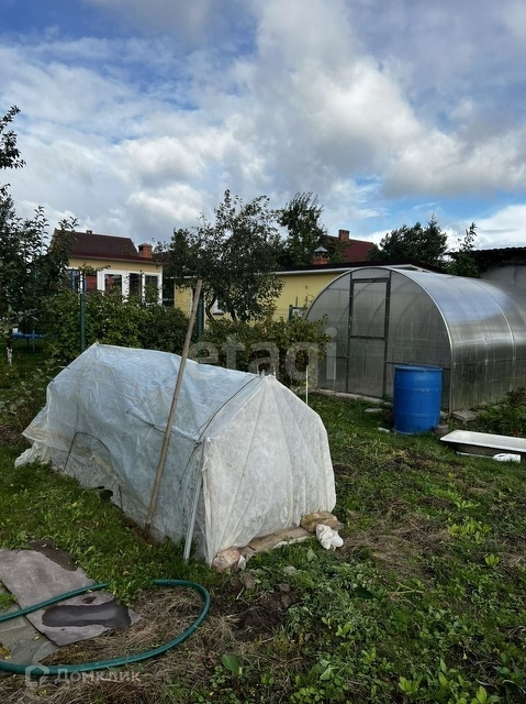 Участок разработан, огорожен, имеются теплицы. Много плодовых деревьев, малины.