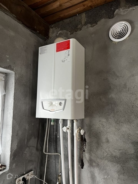 В дом заведен трубопровод газоснабжения и кабель электроснабжения 15 КВт.