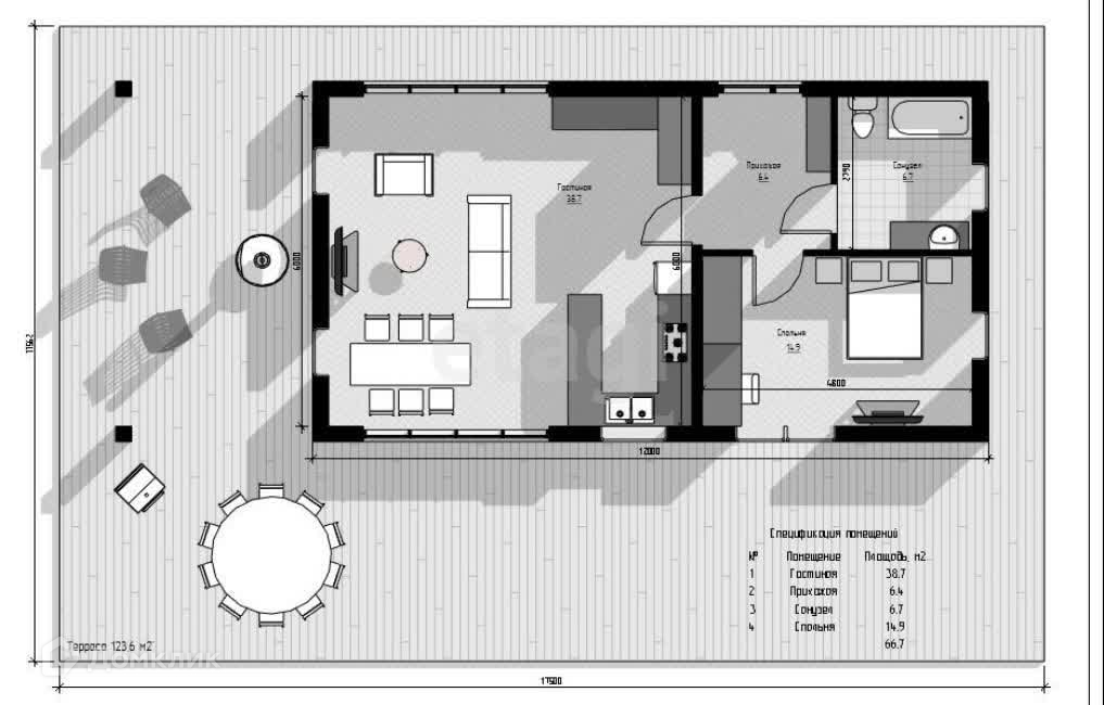 Общая площадь 92.3 м2