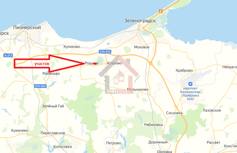 Ориентиры: г. Зеленоградск, п. Коврово, п. Сокольники, п. Куликово.