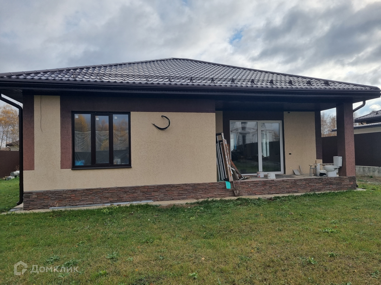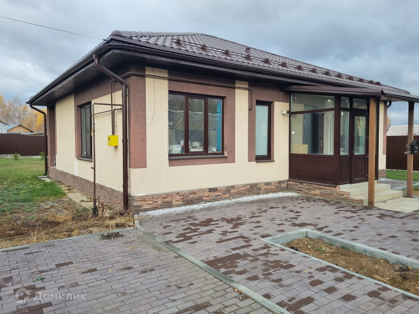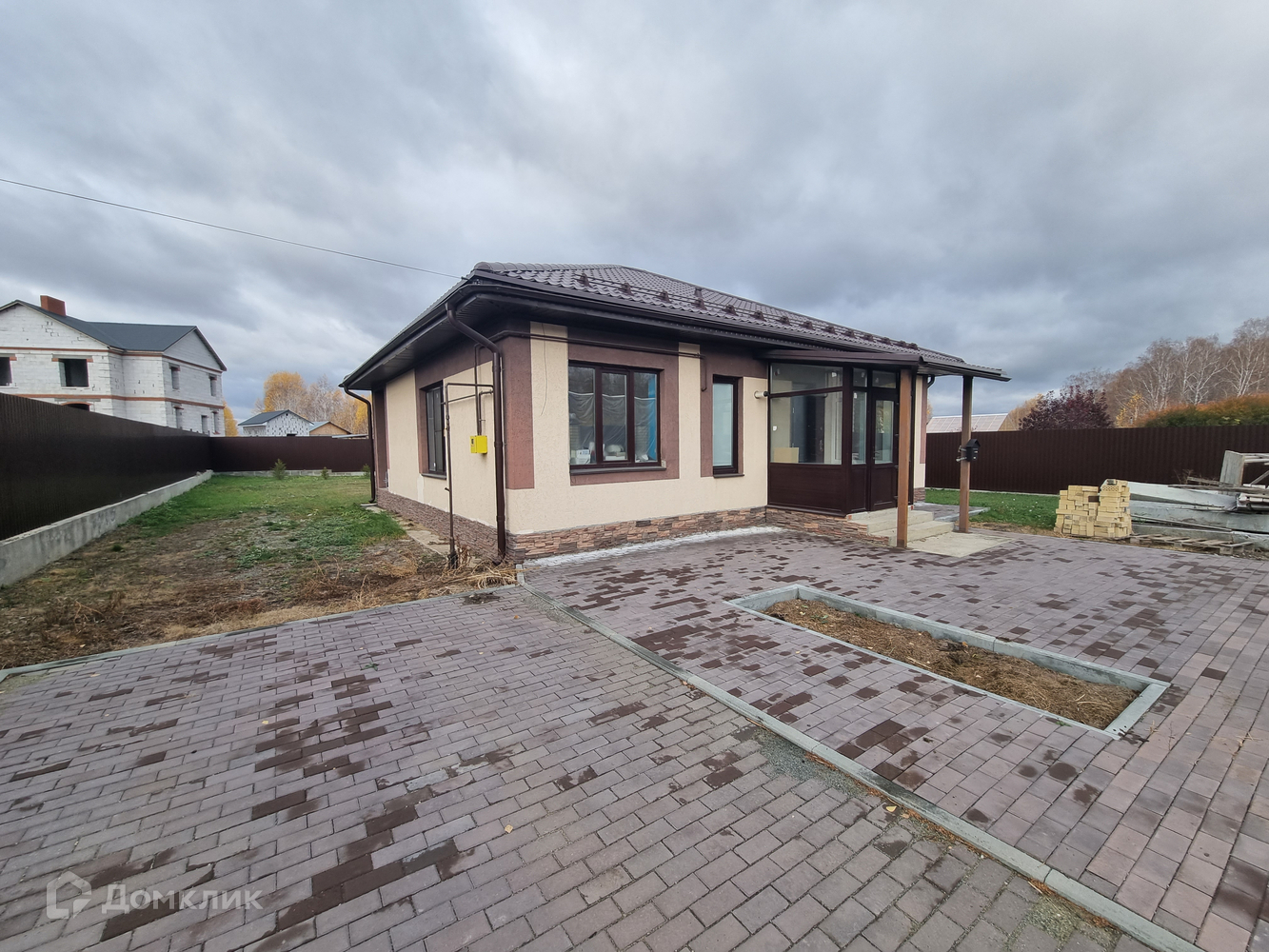 Новый дом с современной востребованной панировкой: кухня-гостиная с выходом на участок и две спальные комнаты, два сан.узла, прихожая, тамбур. Теплый пол, на полу керамогранит, стены отделаны керамогранитом и штукатуркой, разноуровневый потолок. В доме сигнализация, интернет. На участке посажены елочки вдоль задней части забора. Забор из профнастила и кирпича, ворота открываются с пульта, на калитке видеозвонок.