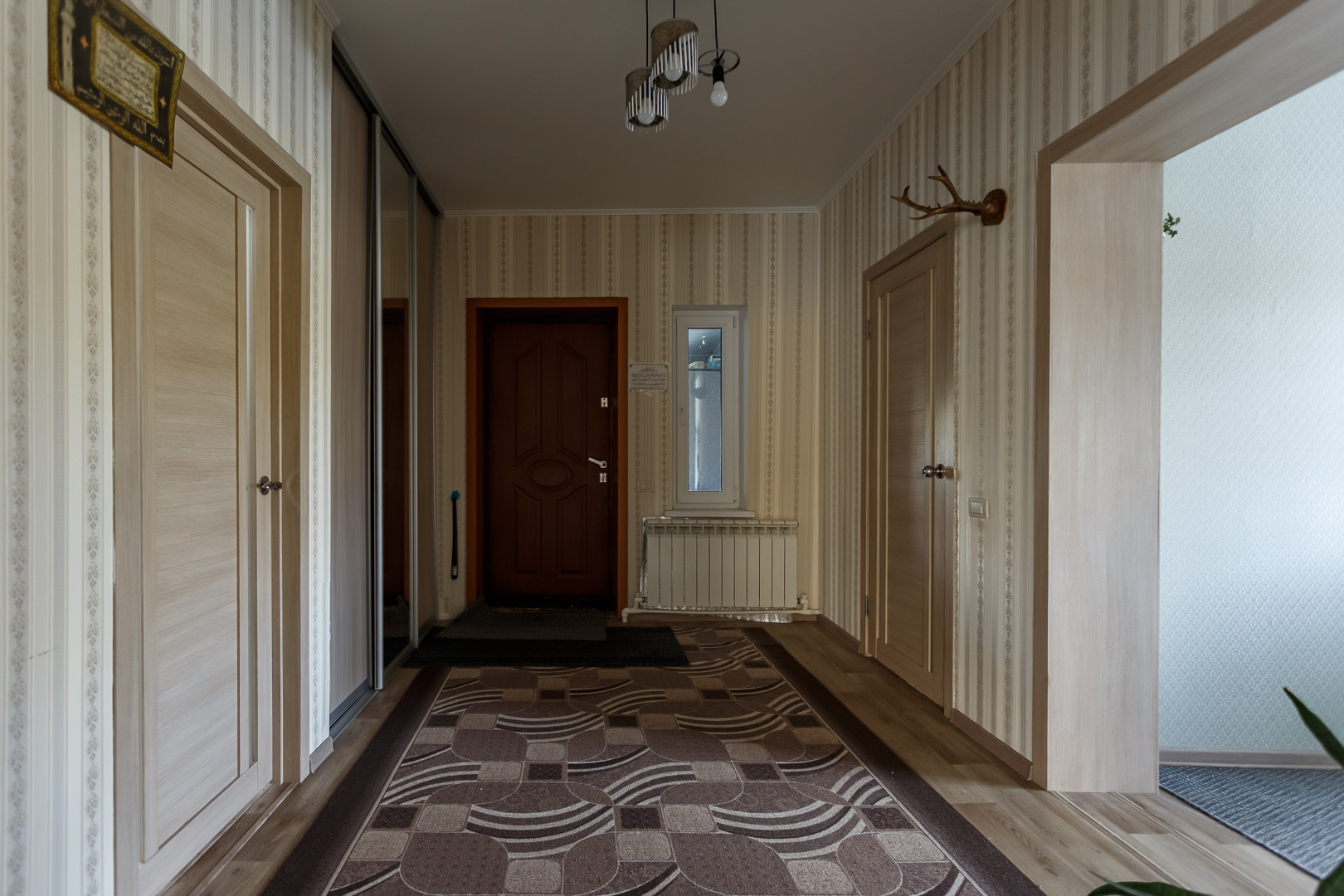 В доме выполнена отделка. Высота потолков 3 метра. Напольное покрытие- линолеум, натяжные потолки во всех комнатах. Установлены пластиковые стеклопакеты.