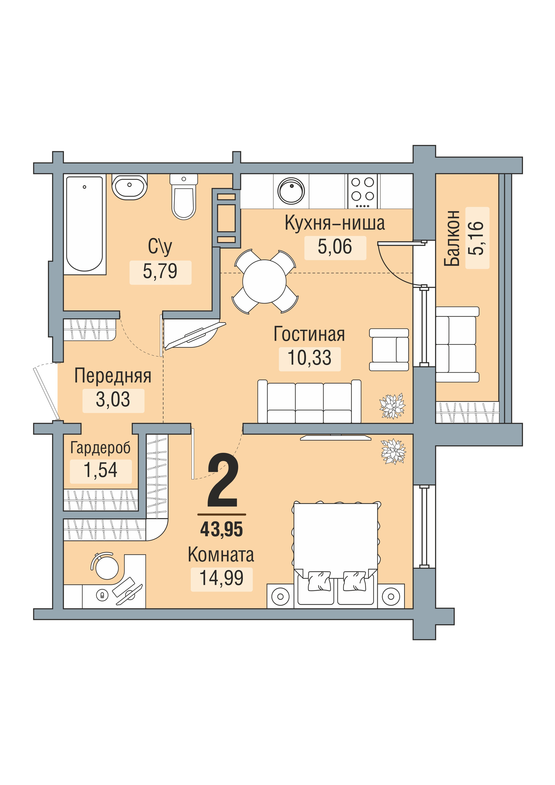 Количество комнат 2