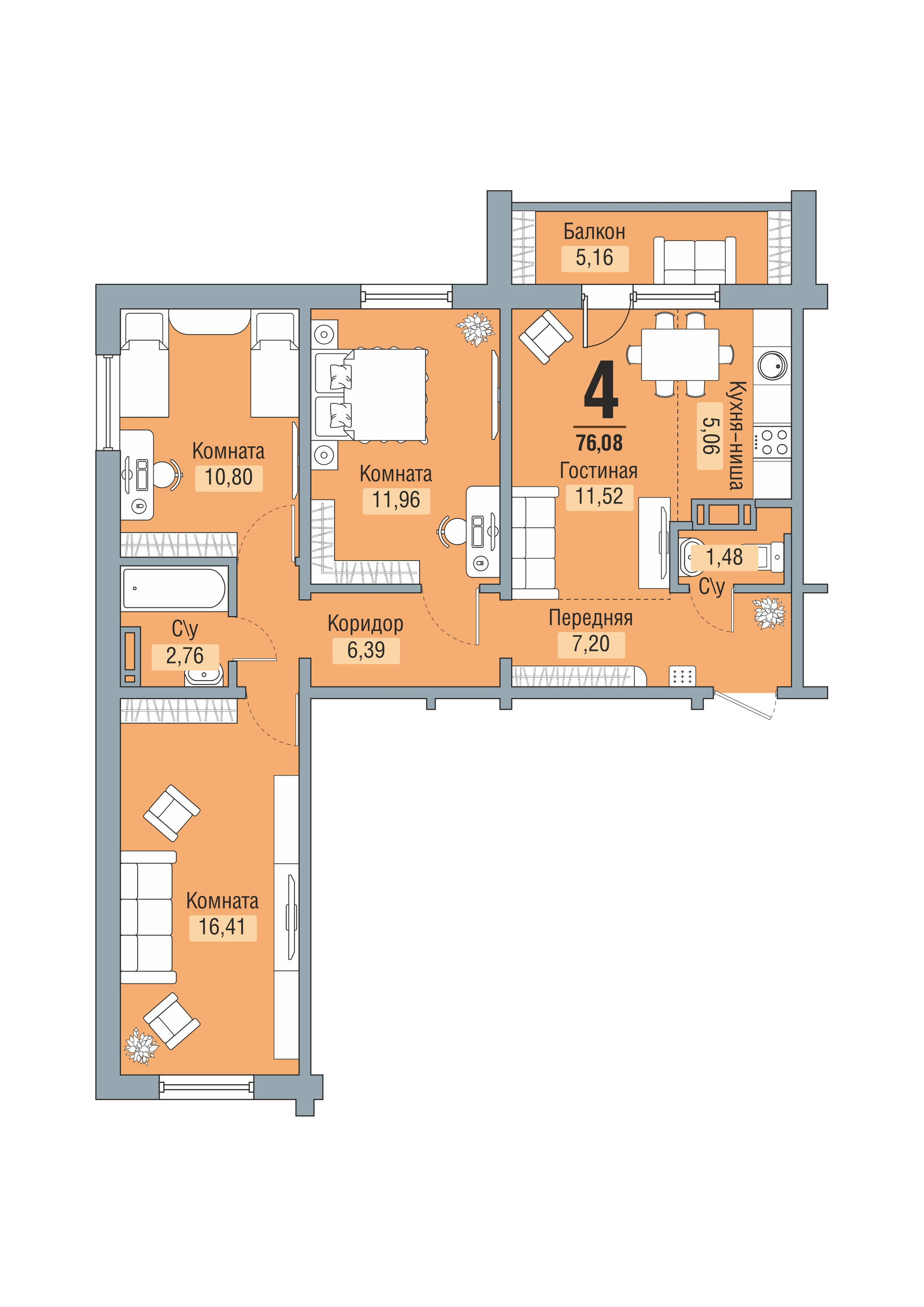 Количество комнат 4