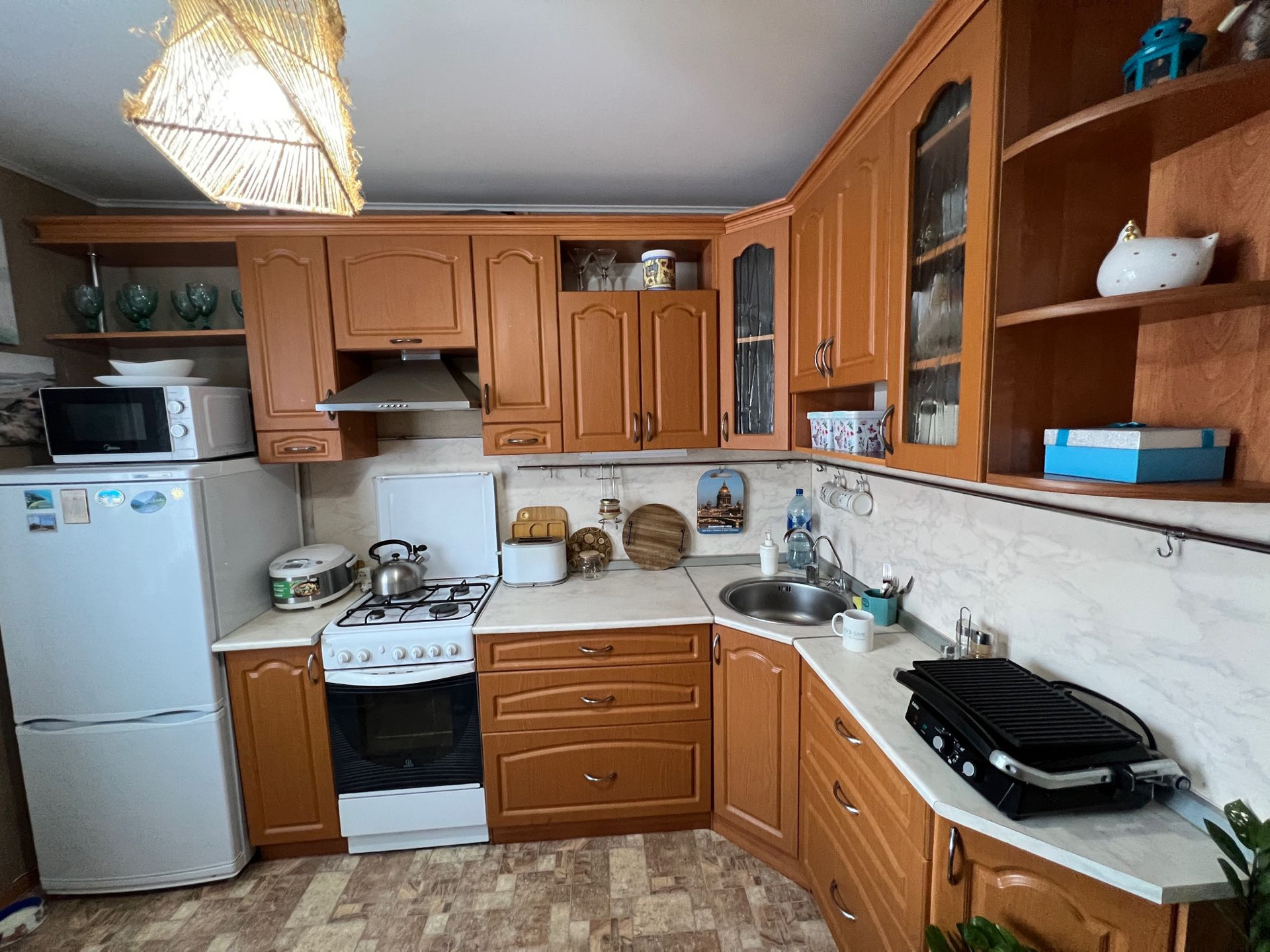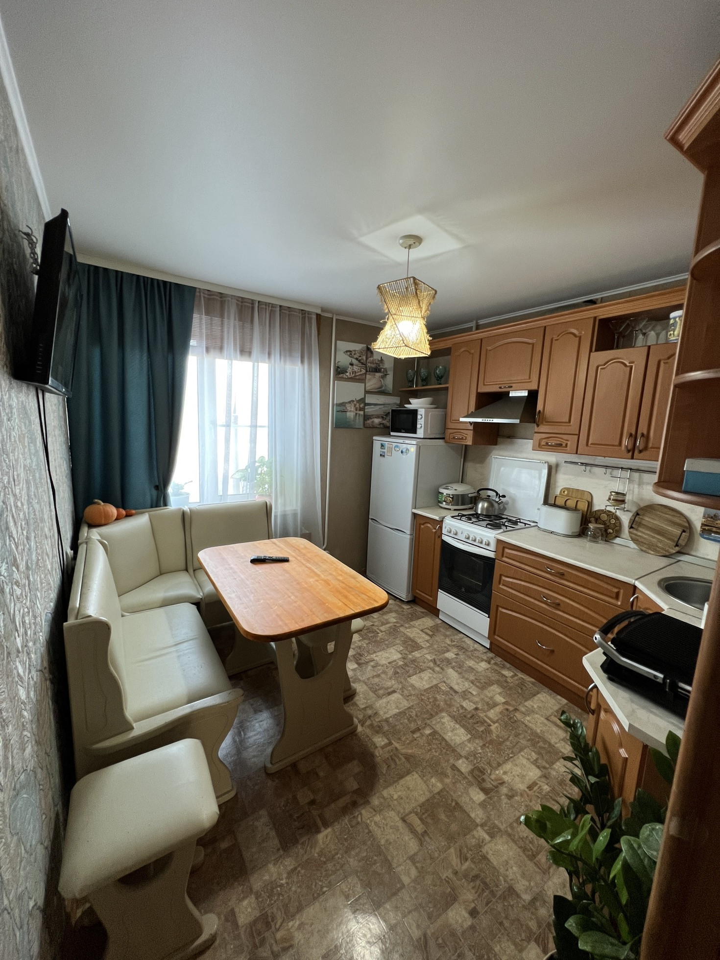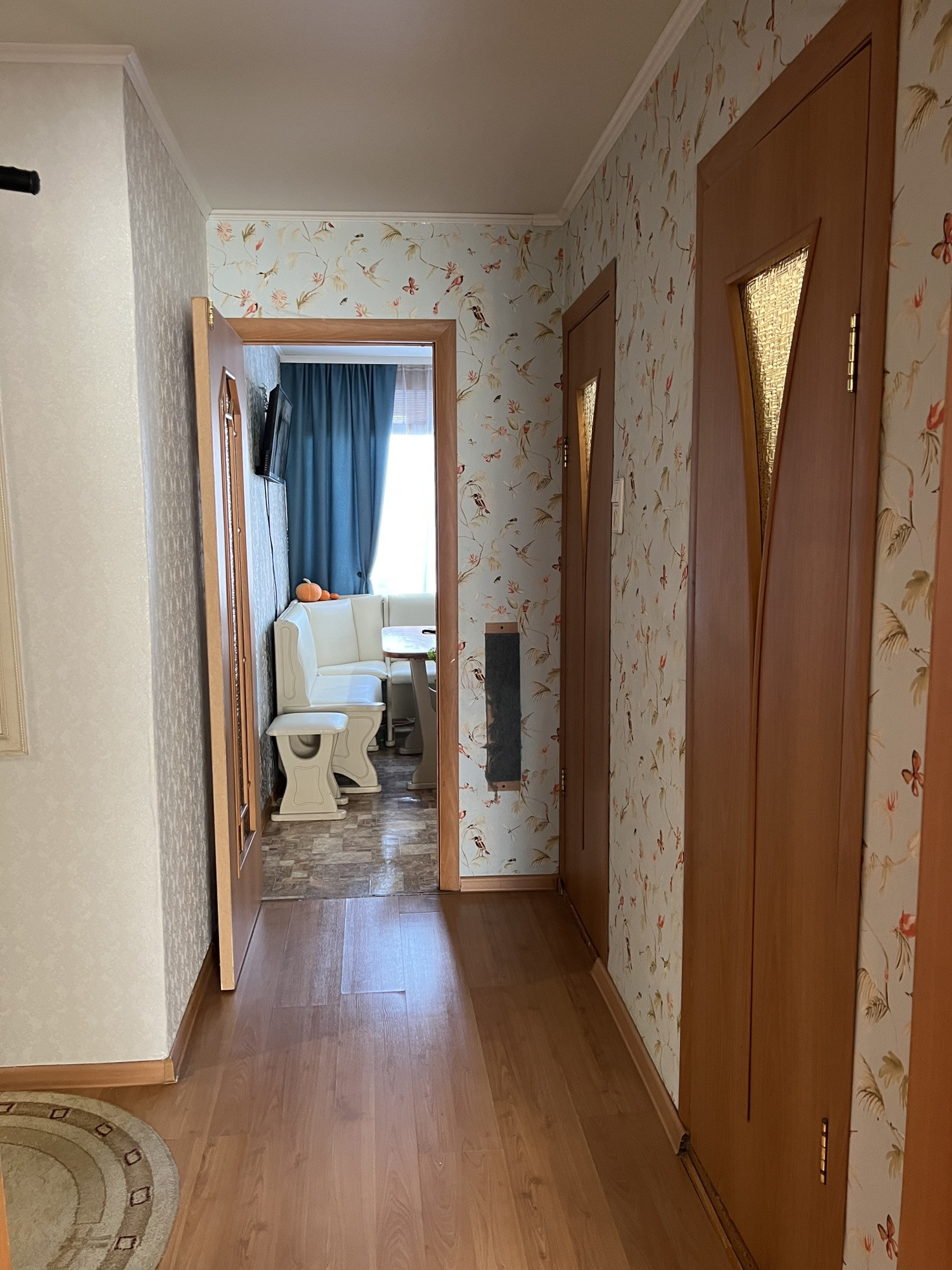 -напольное покрытие ламинат, кухня-линолеум.