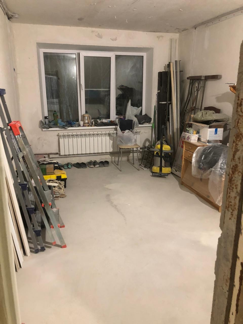 В квартире начинали делать ремонт для себя, а именно: заменена вся проводка с распределительным щитком, заменены окна и входная дверь, выровнены стены и наливные полы, заменены радиаторы и трубы отопления на нержавейку, заменены все канализационные трубы и т.д.