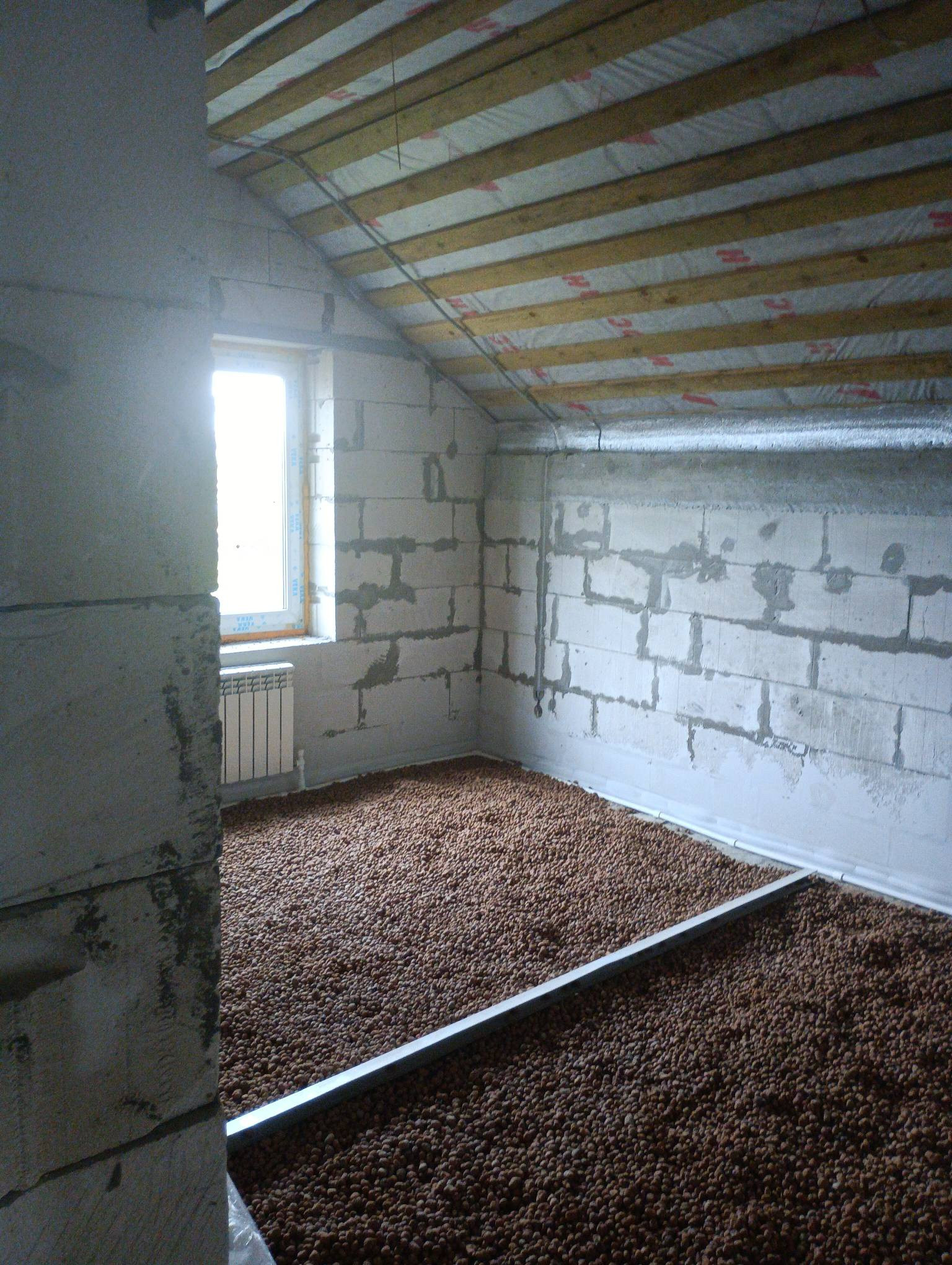 Мансардная крыша утеплена.