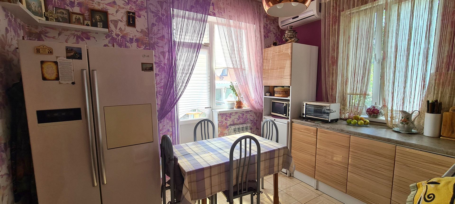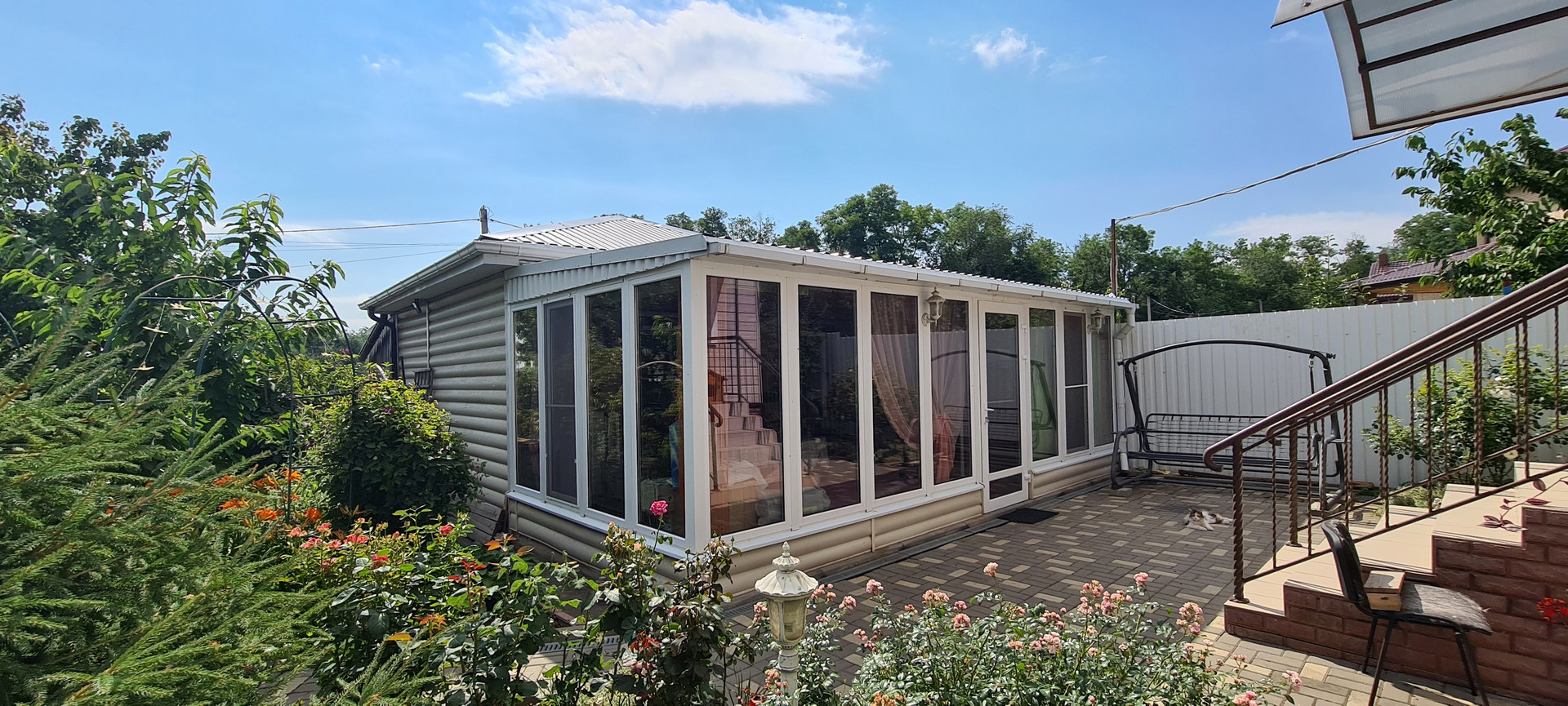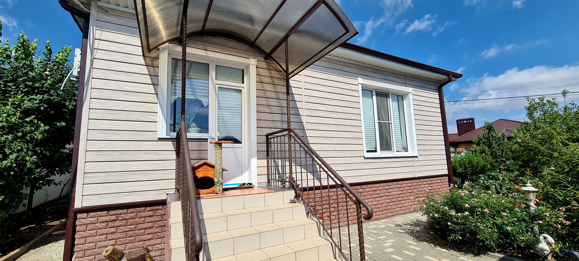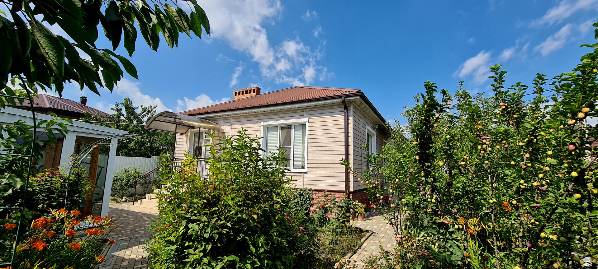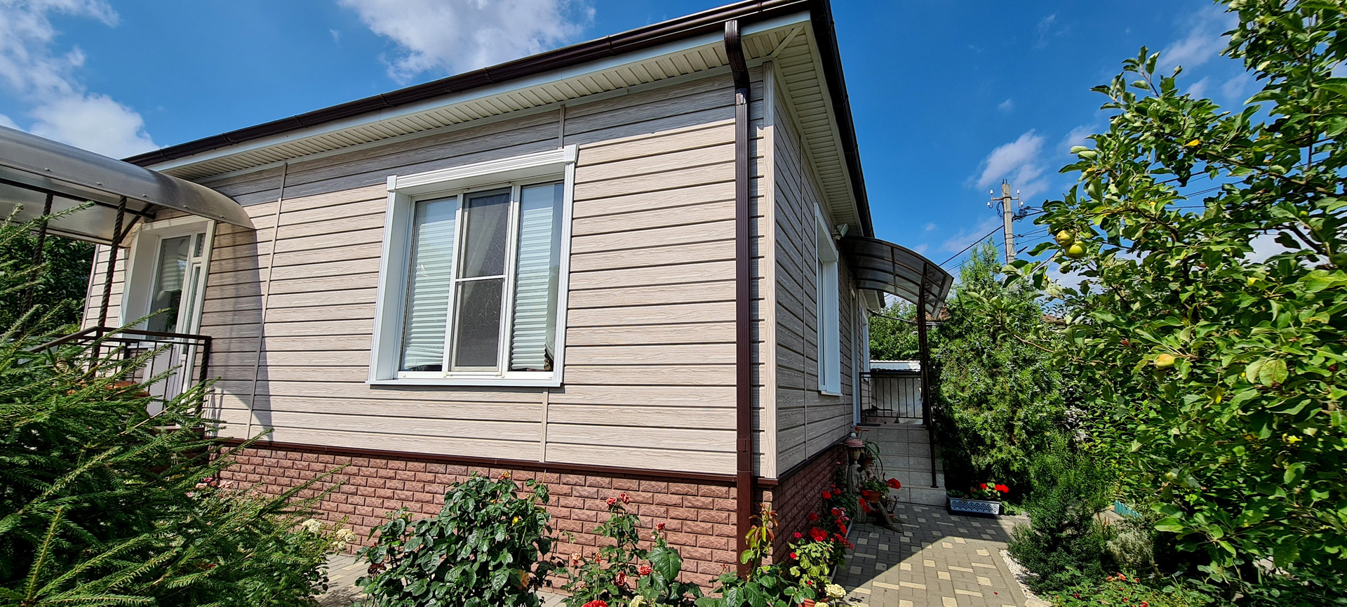 Сделан хороший ремонт. В доме удобная планировка. Спальни, кухня, гостиная, 2санузла, отдельно котельная, станция очистки воды. Все коммуникации в доме и дополнительно своя скважина. На участке много зелени, черешня, абрикос, персик, слива, яблоня, айва, инжир, барбарис, розы...