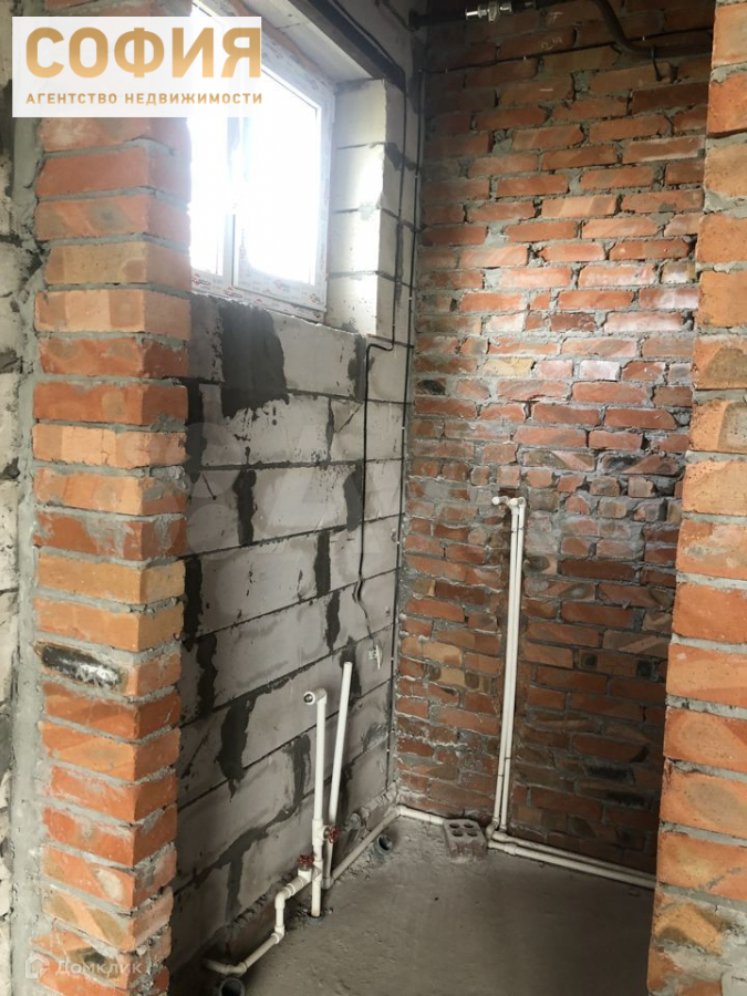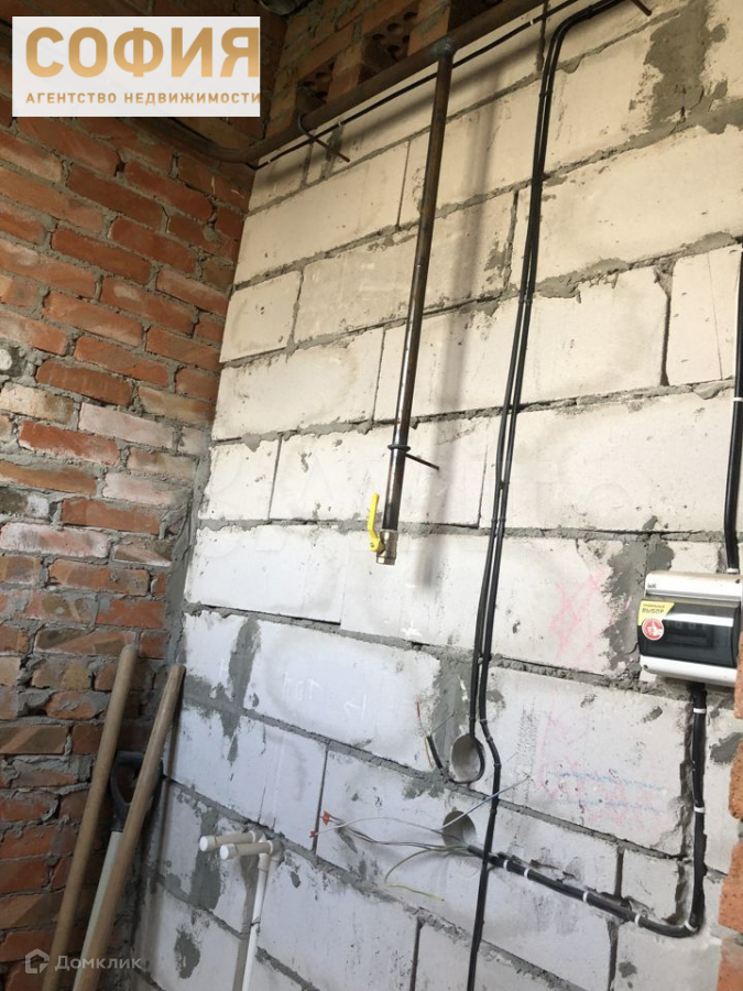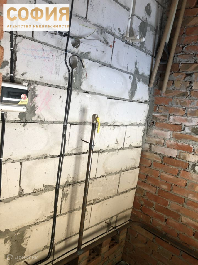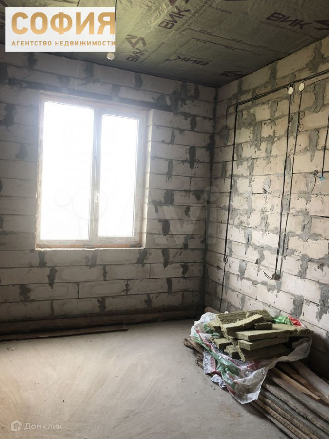 Продаем дом, блок, стройвариант (черновой). Земля ИЖС 6 сот, с трех сторон стоят столбы для забора из низ с двух сторон с фундаментом. На участке есть уклон и произведена небольшая планировка участка, электричество, вода, газ (подземный) в дом заведены, сливная яма на 16 куб.м, летний душ, туалет на улице, посажены деревья.  В доме - разводка электричества, разводка воды, потолок черновой, пол плита, два входа - по фасаду и из кухни. Район очень быстро застраивается, соседи живут постоянно. Дорога - тырса, но проехать можно в любую погоду. Очень тихое, спокойное место, чистый воздух.