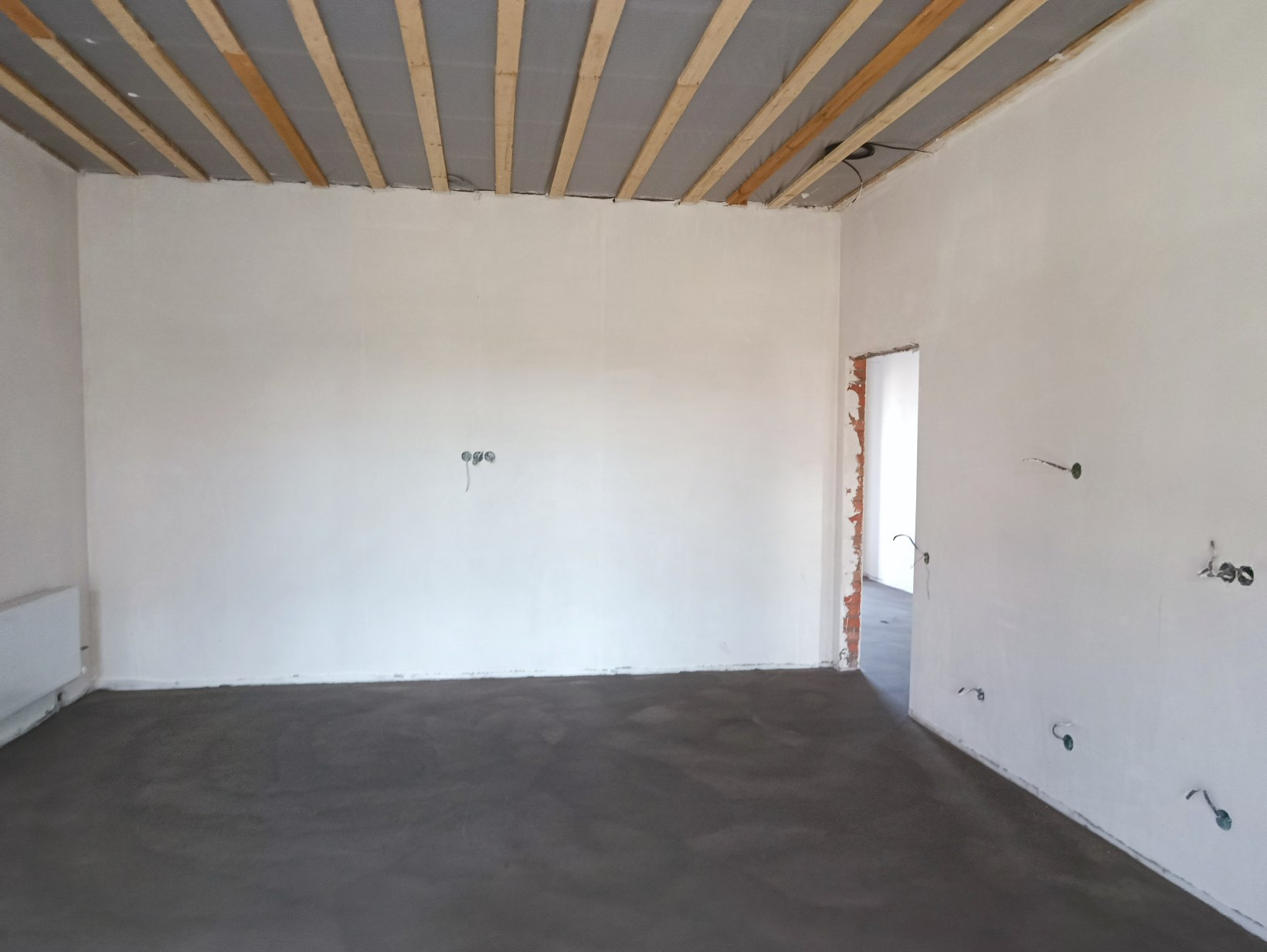 состояние объекта-чистовая отделка: выполнена разводка электричества, штукатурка, разводка системы отопления с установкой радиаторов и подключением двухконтурного газового котла, тёплый пол по всему дому.