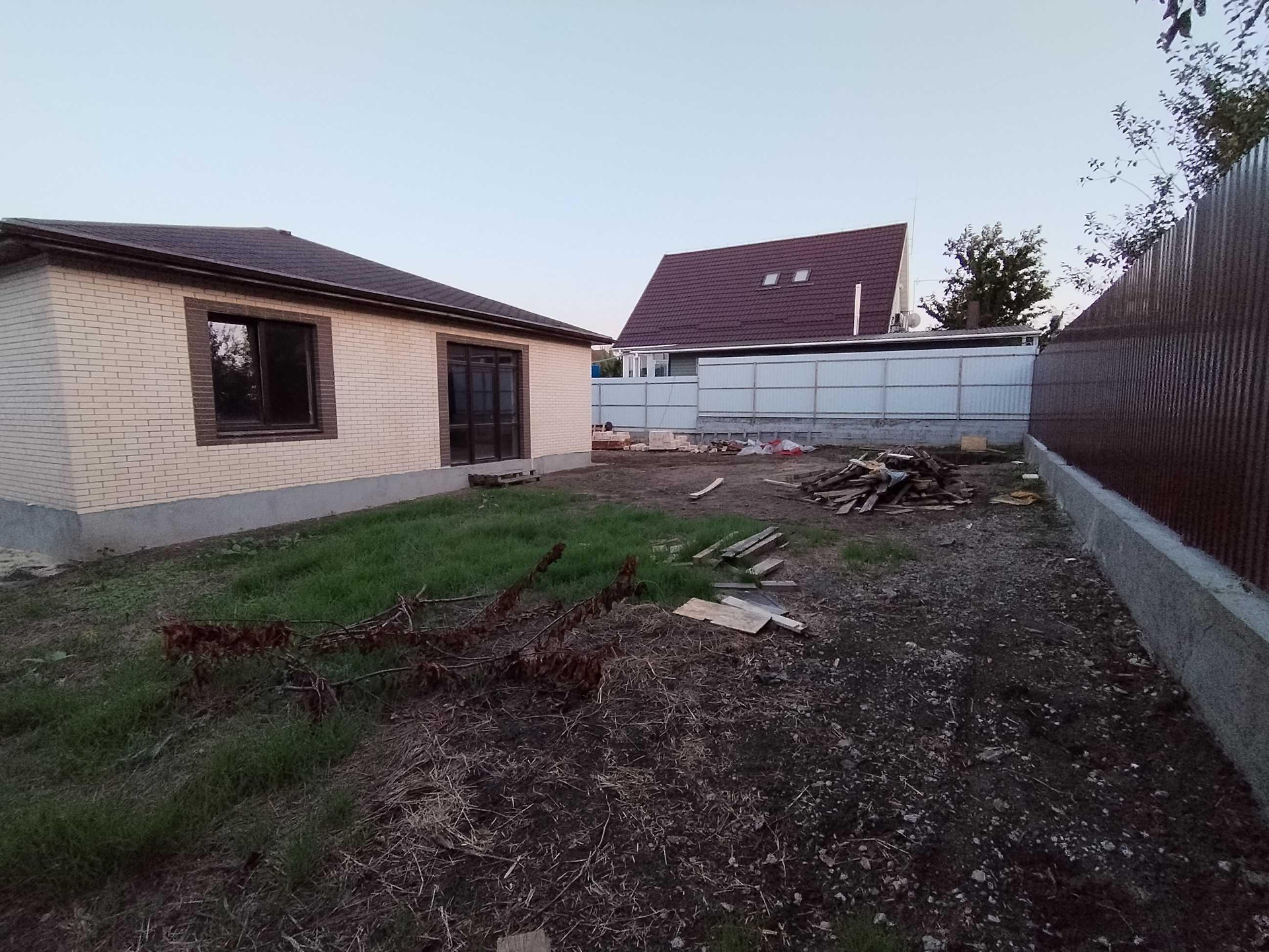 Участок 6 соток,правильной формы, без уклонов. По периметру с 3 сторон огорожен профлистом,фасад кирпич/профлист.На участке достаточно места для парковки машин,можно построить баньку,детскую игровую площадку.