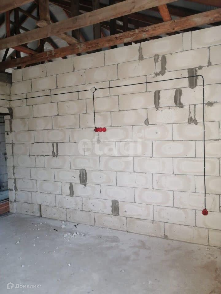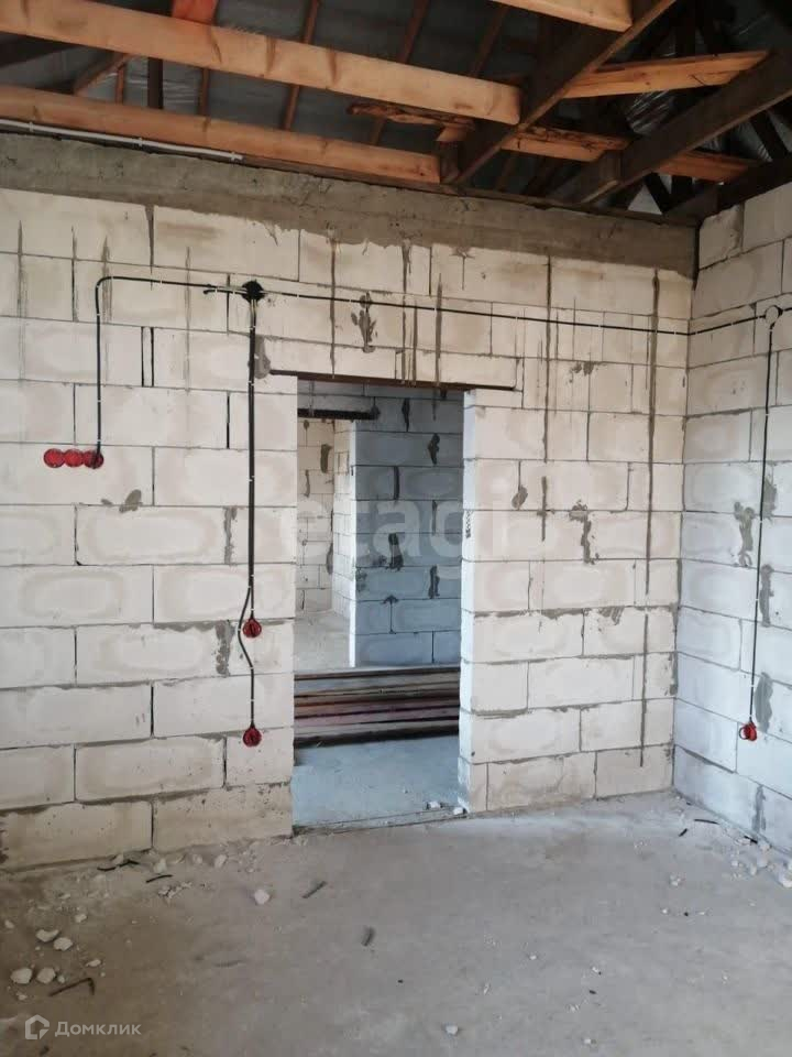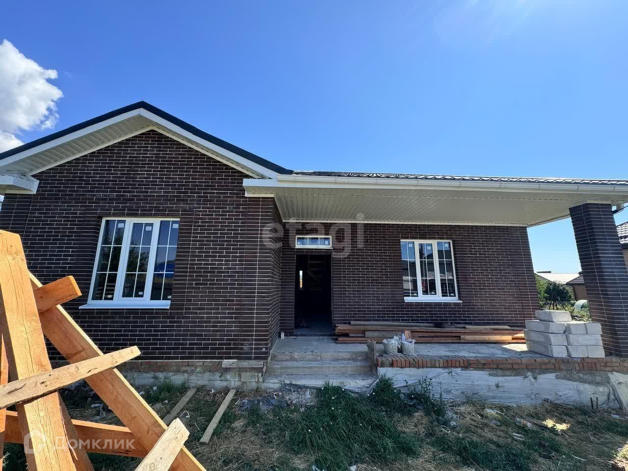 Дом под черновую отделку. Материал стен - газоблок, облицован кирпичом.