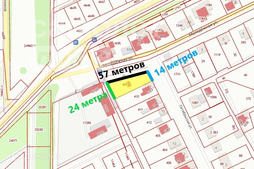 Размеры участка 56 метров на 14 метров и 24 метра