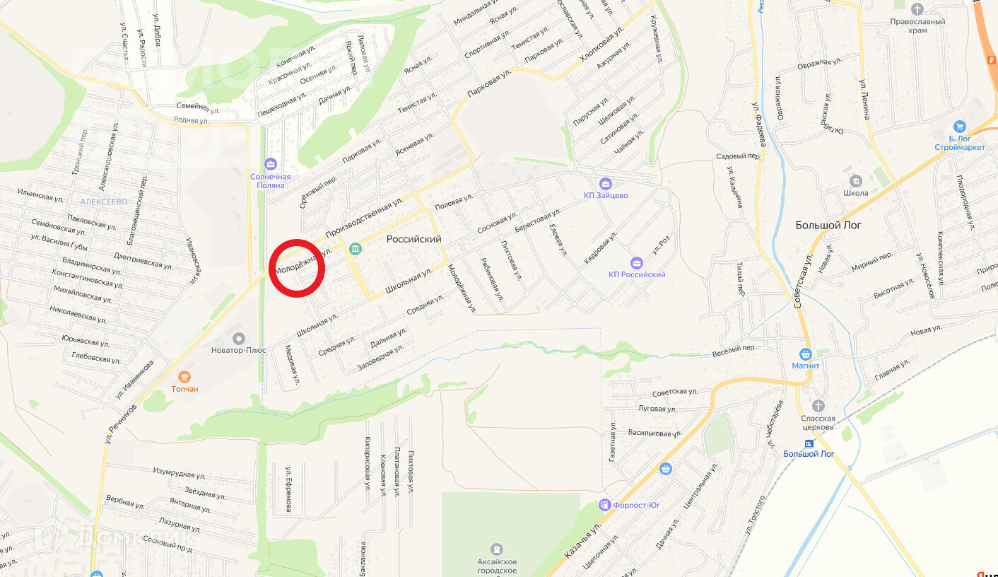 Участок расположен на въезде в бурноразвивающийся поселок Российский Аксайского района.