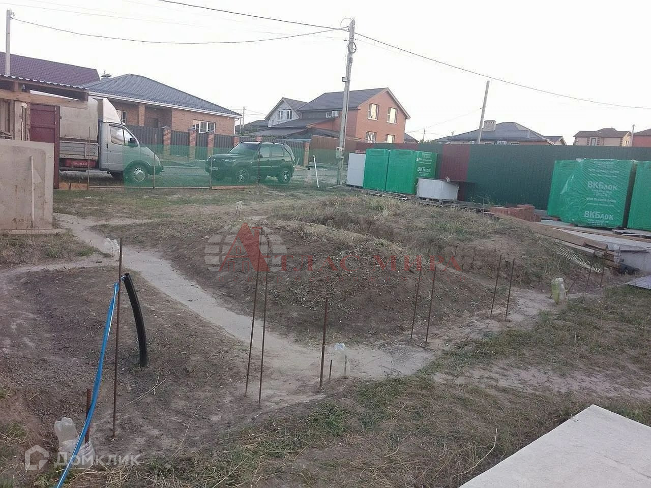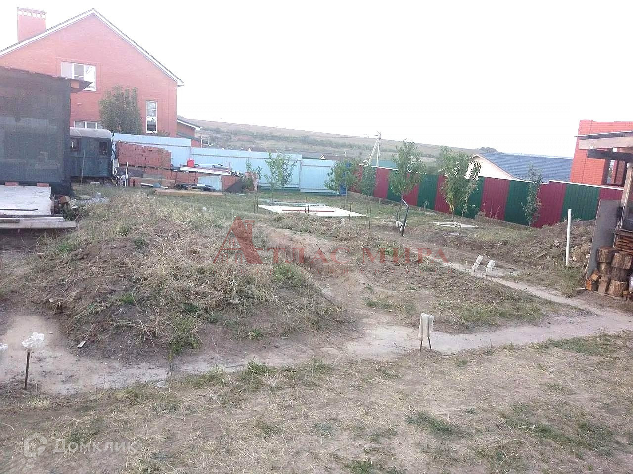 Участок: ровный, правильной формы. фасад 20 метров. Электричество и вода заведены. Газ по улице. На участке залит фундамент 8.5 м.*10 м. под жилой жом, а так же имеется фундамент под гараж  4 м.*8.5 м. Под гаражом есть не большой подвал/погреб 3м*3м. Участок огорожен со всех сторон забором. Так на участке есть, туалет, выгребная яма, вагончик для временного пребывания и навес.