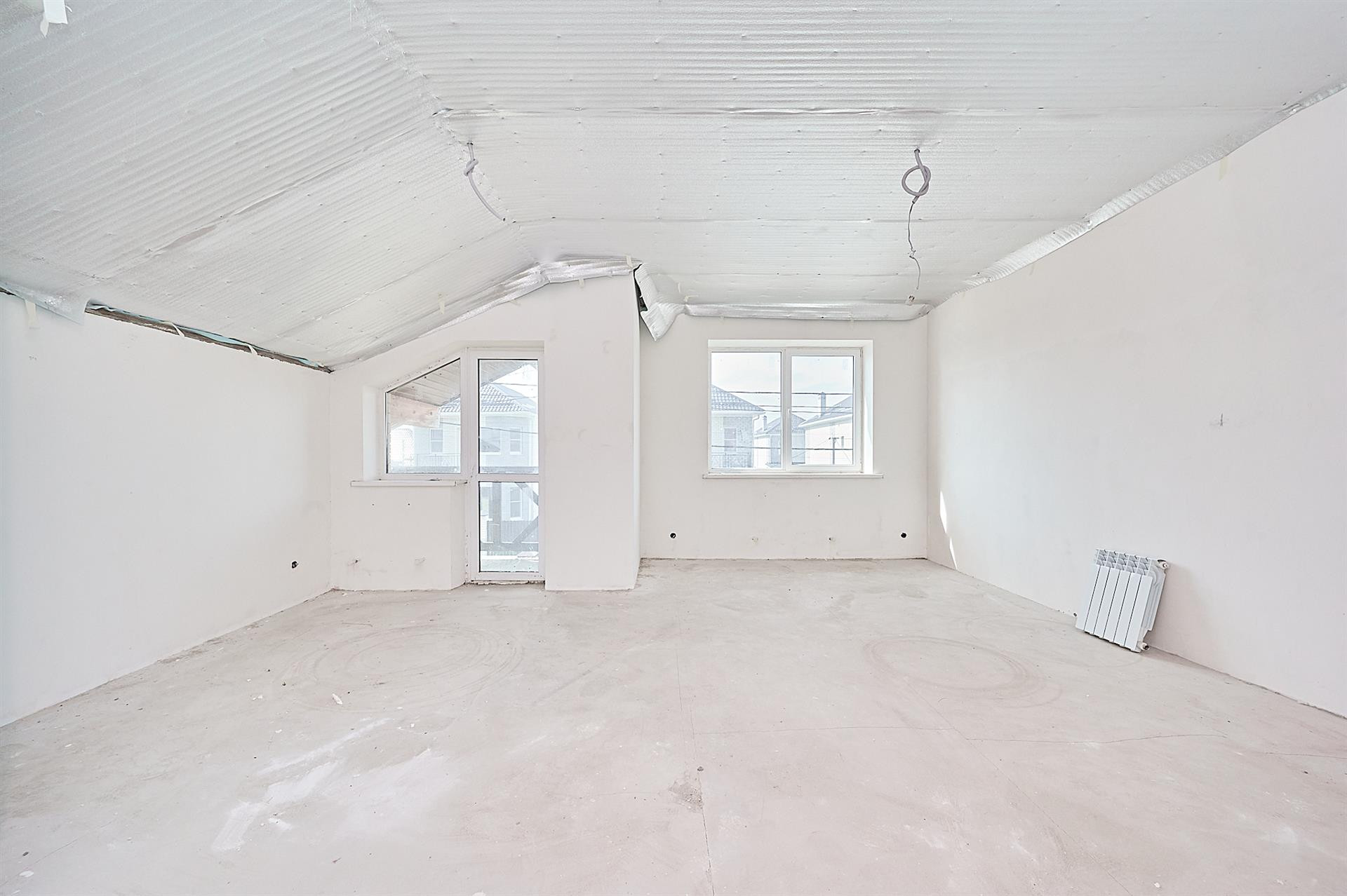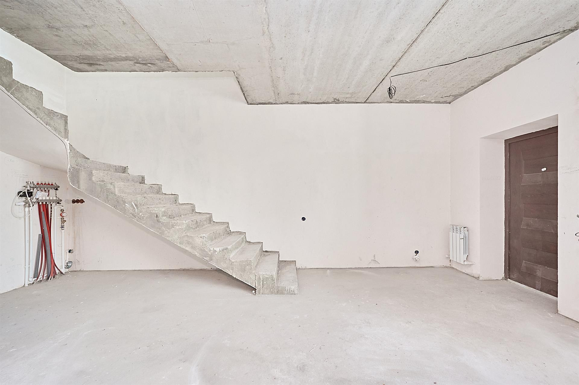 Три комнаты и кухня гостиная. На первом этаже выполнен частичный ремонт. Санузел первого этажа полностью готов. Теплый пол по всему первому этажу.