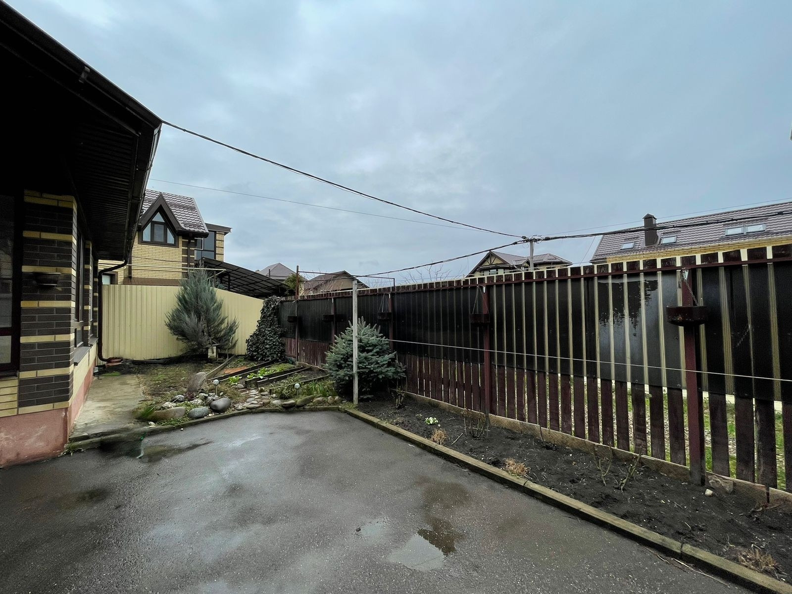 Территория дома огорожена, установлены откатные ворота, имеются небольшие хозяйственнве помещения.
