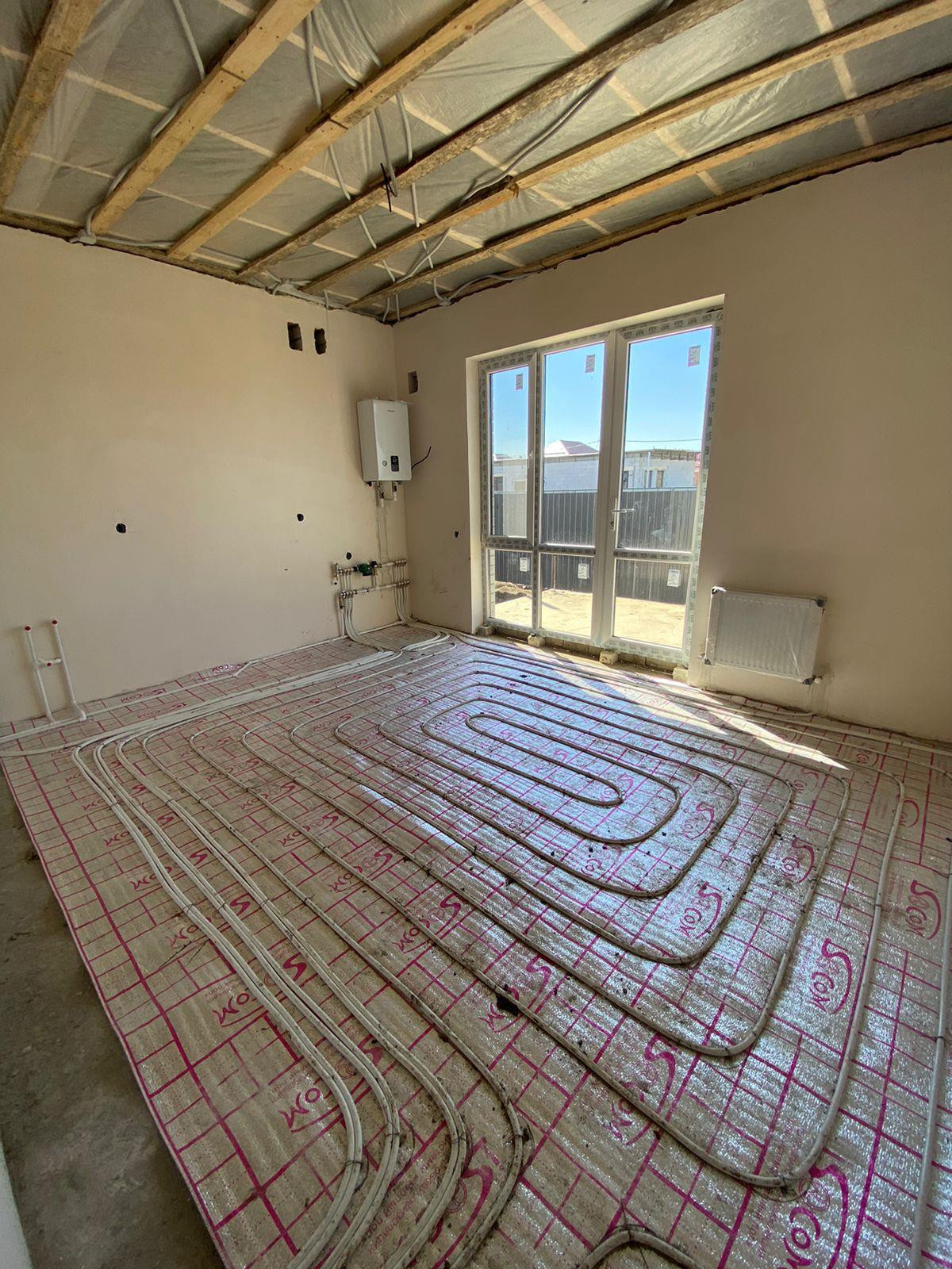 Электричество - 15 кВт, Вода - скважина 41 метр, Септик 9м3, тёплые полы в доме, стяжка-штукатурка, терраса, отопление электро-котёл, откатные ворота, места для парковки авто.