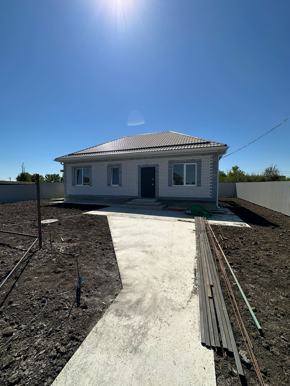 Во двор бетонный заезд под машину, откатные ворота.