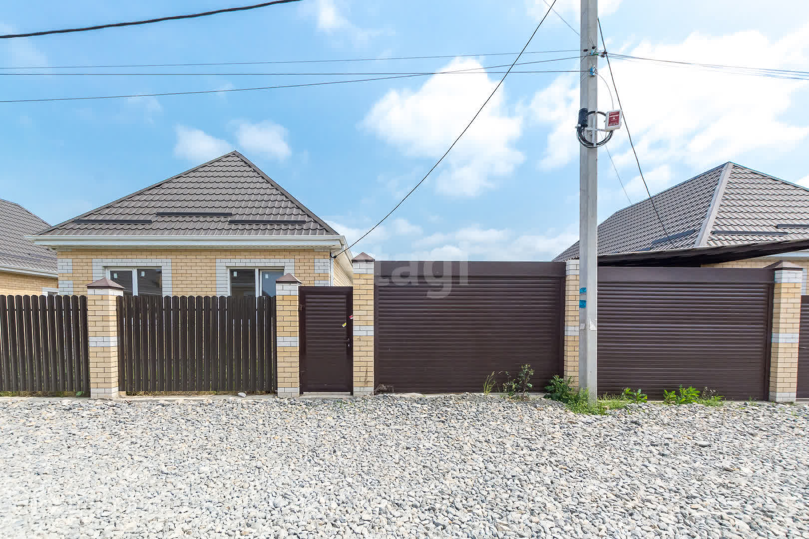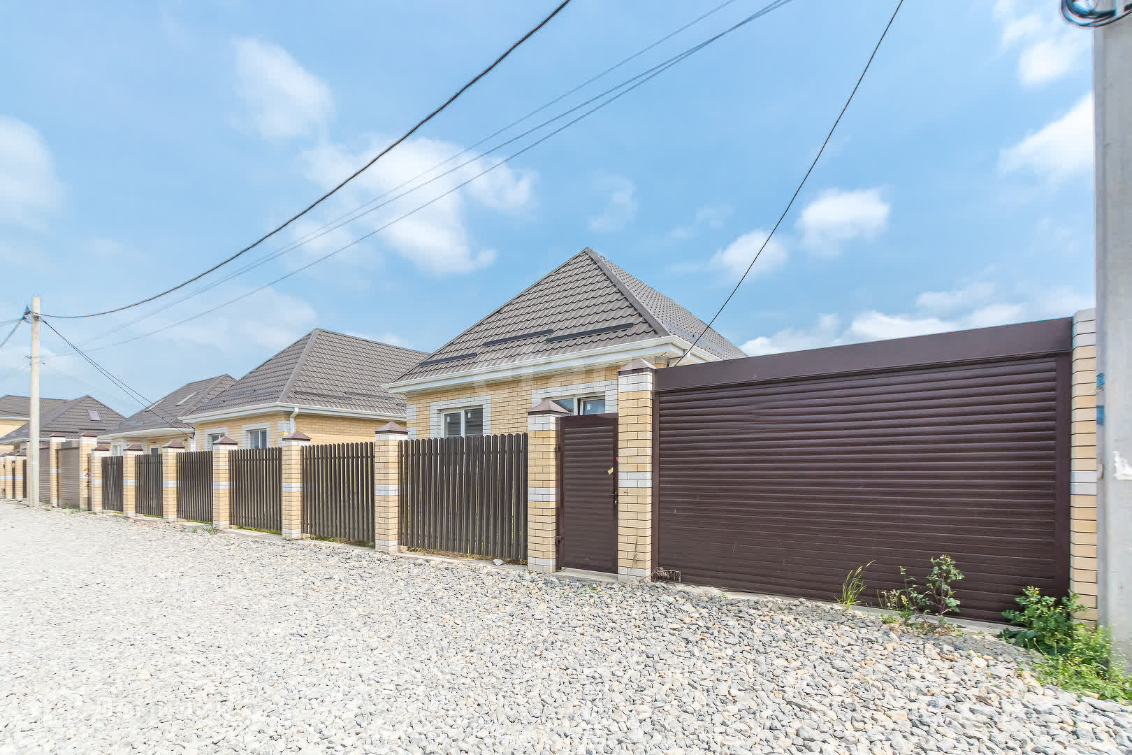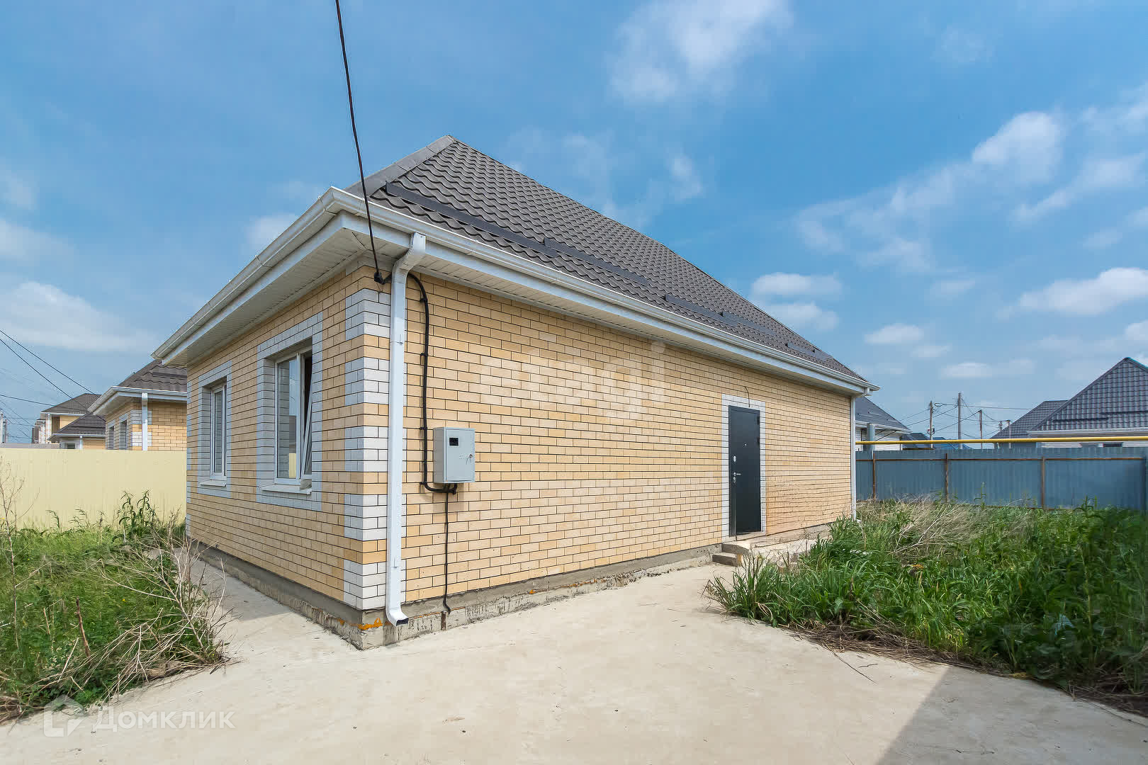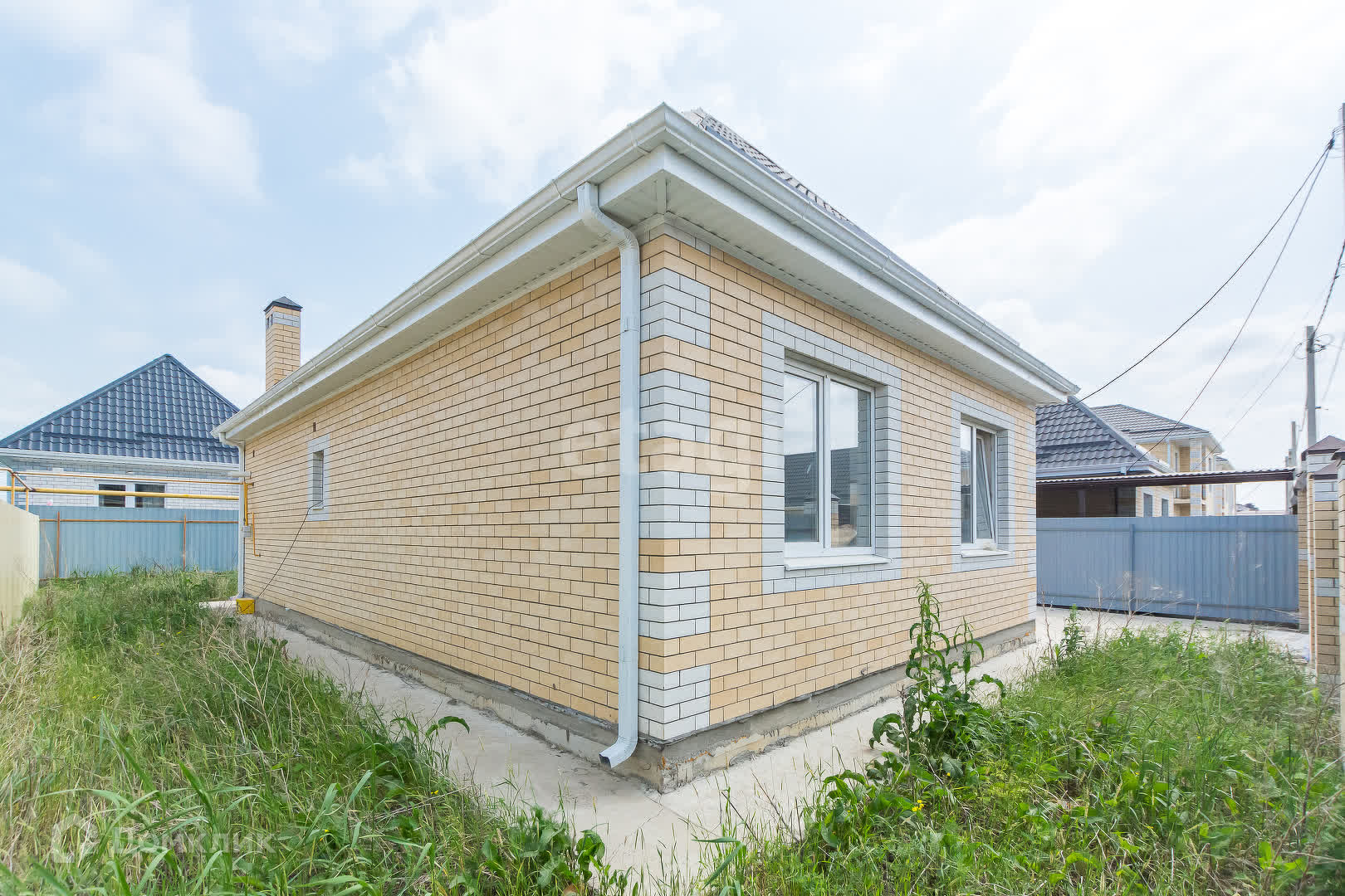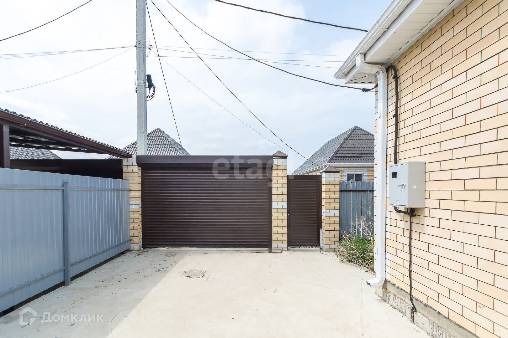 е) придомовая территория: забор из профнастила по периметру, автоматическая роллета, калитка, парковочное место для автомобиля, отмостка по периметру дома, крыльцо;
