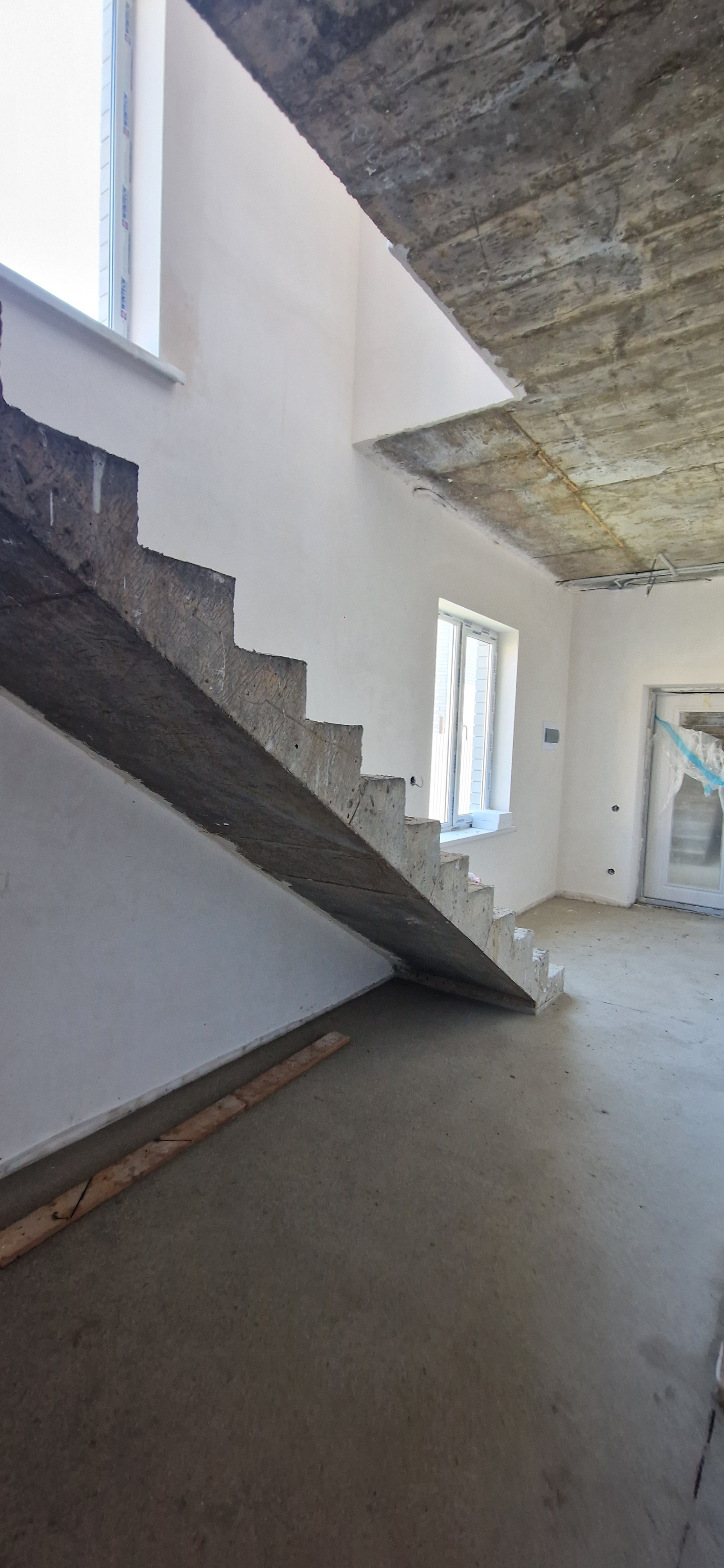 Дом новый от застройщика,монолитное перекрытие,монолитная лестница.