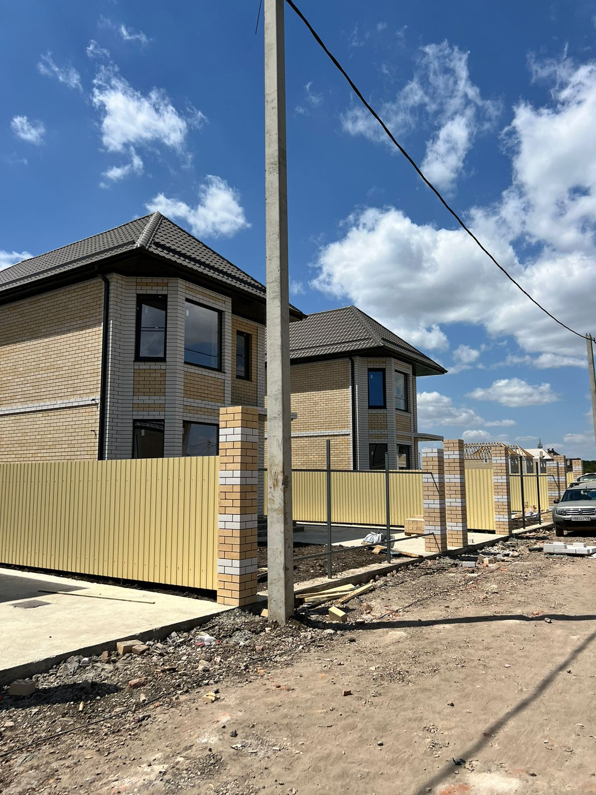 Все коммуникации. Дома подключены к центральному газу, а электричество составляет 15 кВт.