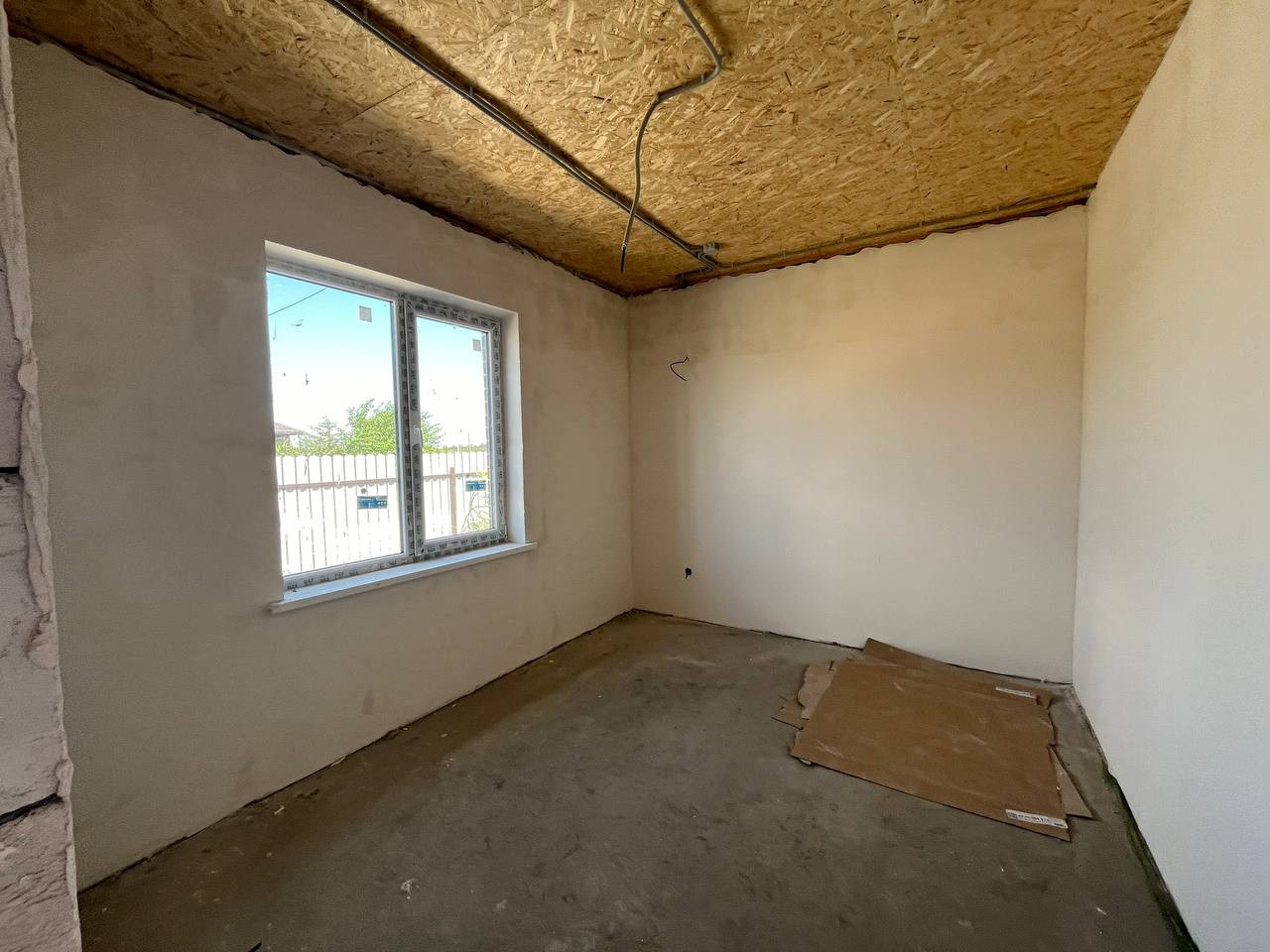 В доме предчистовая отделка ,можно приступать к ремонту.Разводка электрики по дому. Напряжение света 15 кВт, скважина 30 метров, септик дренажный 10 кубов.Стяжка пола, теплый водяной пол.