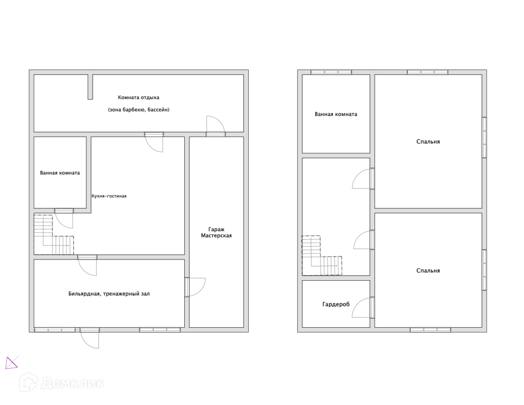 • Комнаты: 2 просторные и светлые спальни, большая кухня-гостиная, комната отдыха с бильрдным столом и спортивными тренажерами.