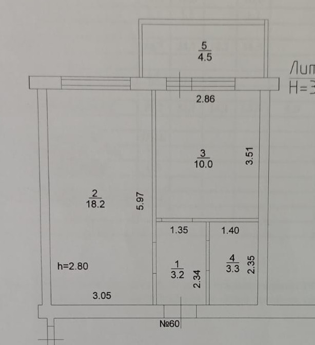 Балкон, лоджия 1 балкон