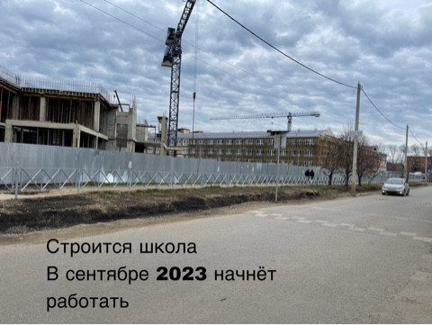 В пяти минутах ходьбы от дома строится новая школа, которая в 2023 году начнет работать. Смотрите фото - можно посмотреть этап готовности школы.