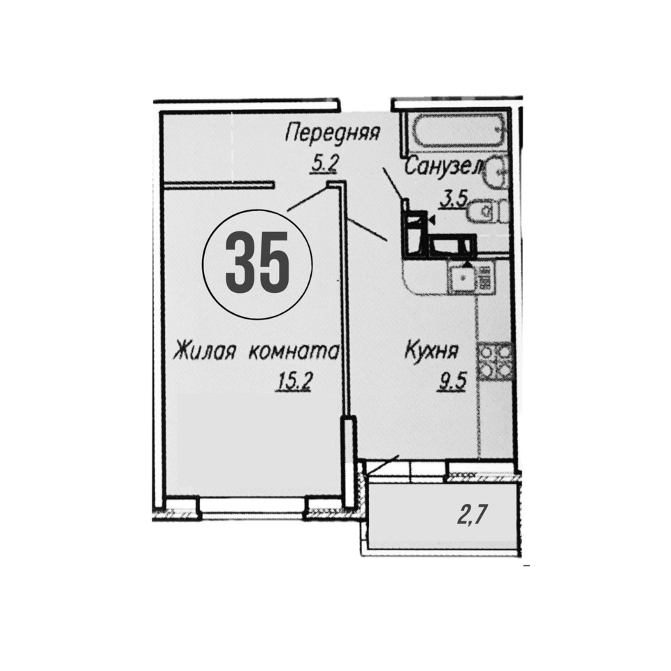 Общая площадь 35 м2