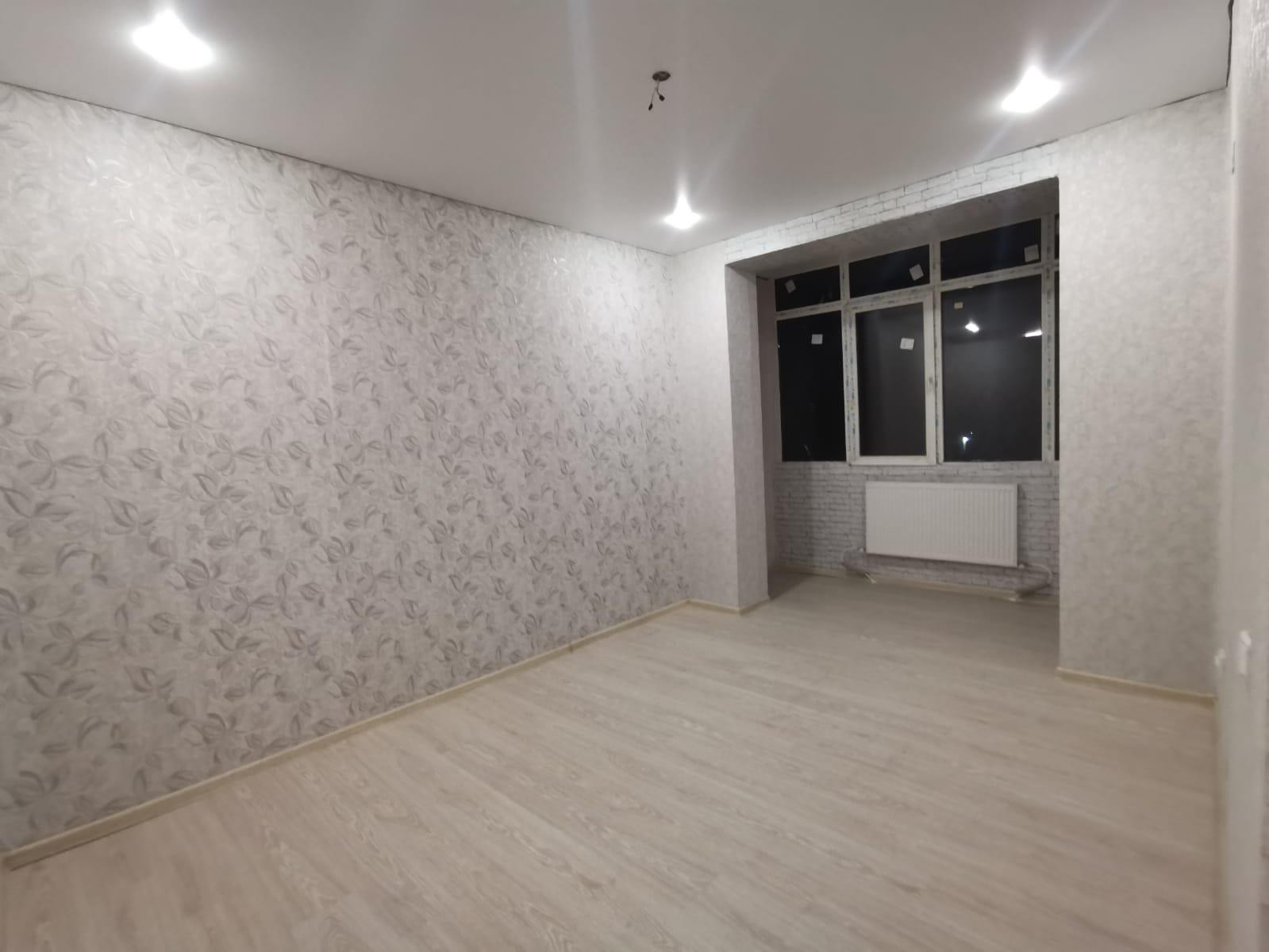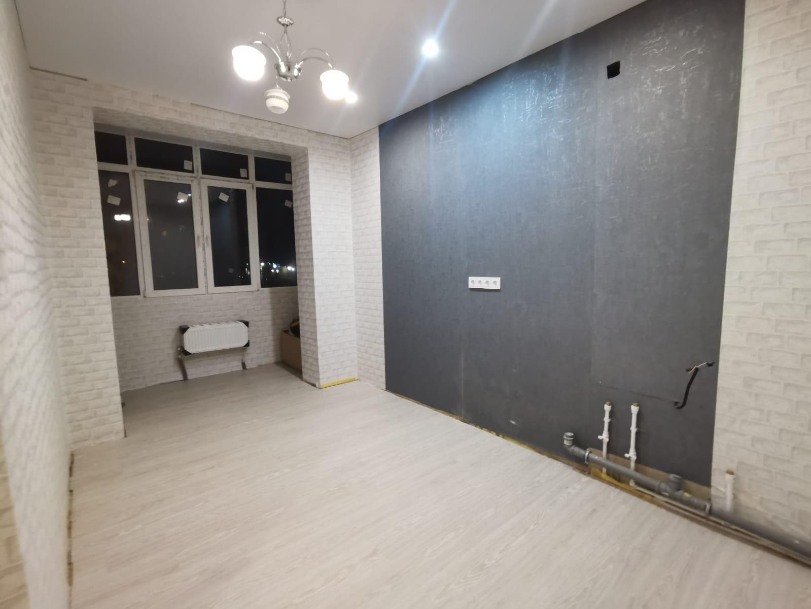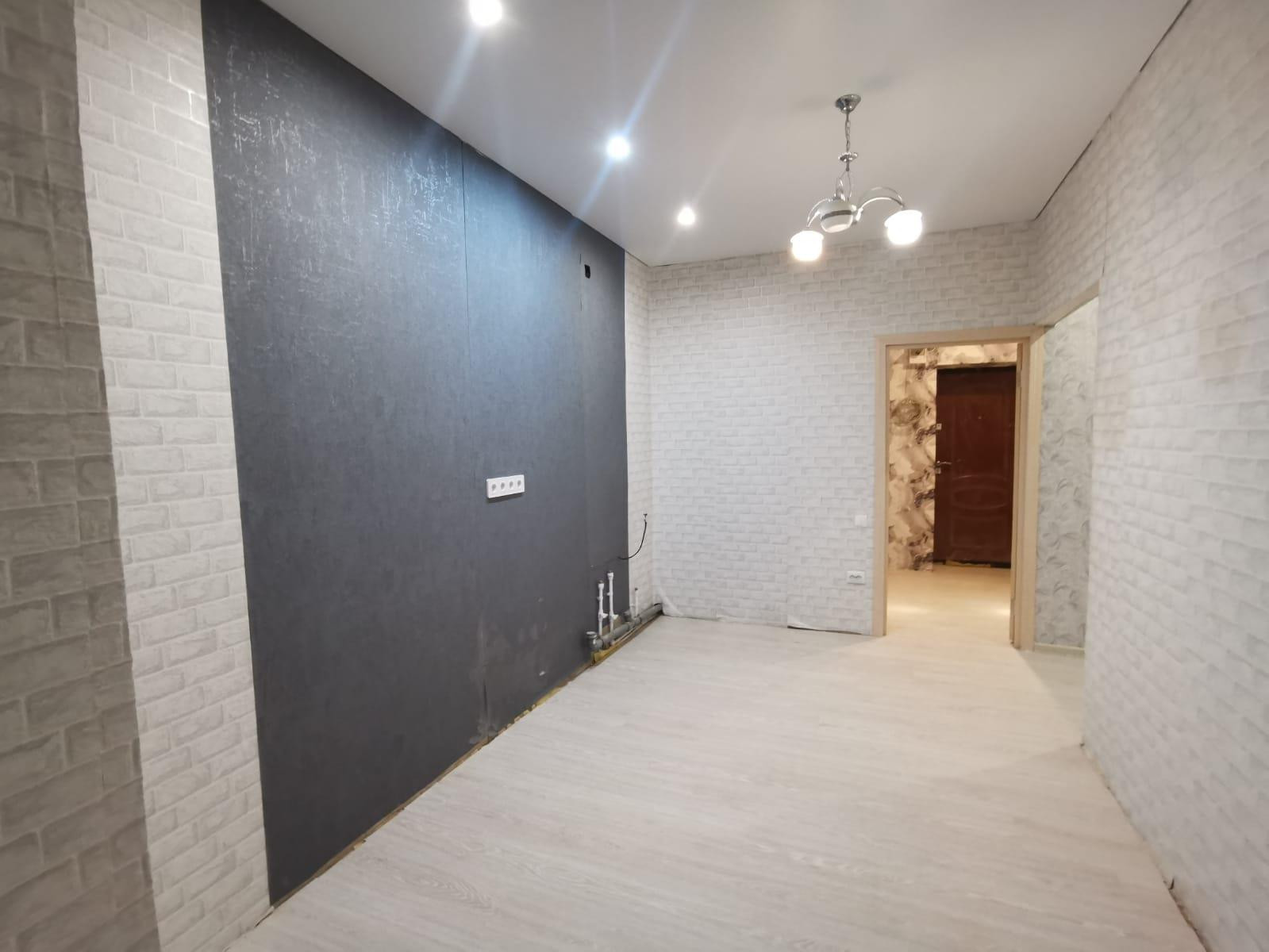 В квартире собственник сделал полностью новый ремонт. Переделал в 12км за счет разделения спальни и соединения ее с кухней