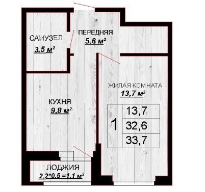 Общая площадь 33 м2