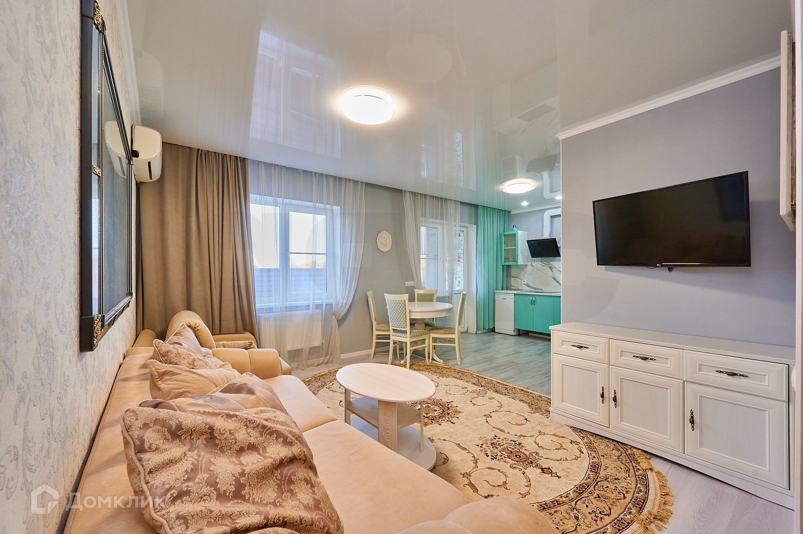 В продаже просторная двухкомнатная квартира 53 кв.м. с ремонтом и мебелью.