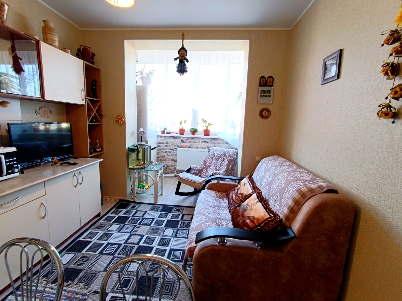 2 изолированных комнаты в которых могут  разместится дети и родители. Кухня, где приятно готовить ужин всей семье. Большой  застекленный ленточный балкон, где можно приятно проводить время. Хороший ремонт, современный, нейтральный, универсальный. Совмещенный санузел со всем необходимым.