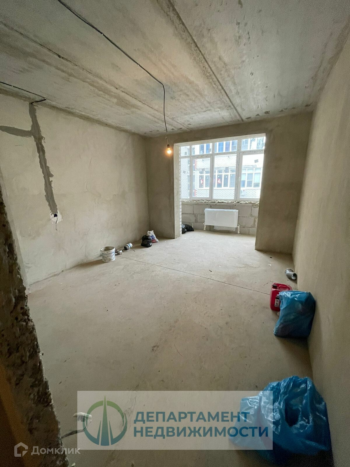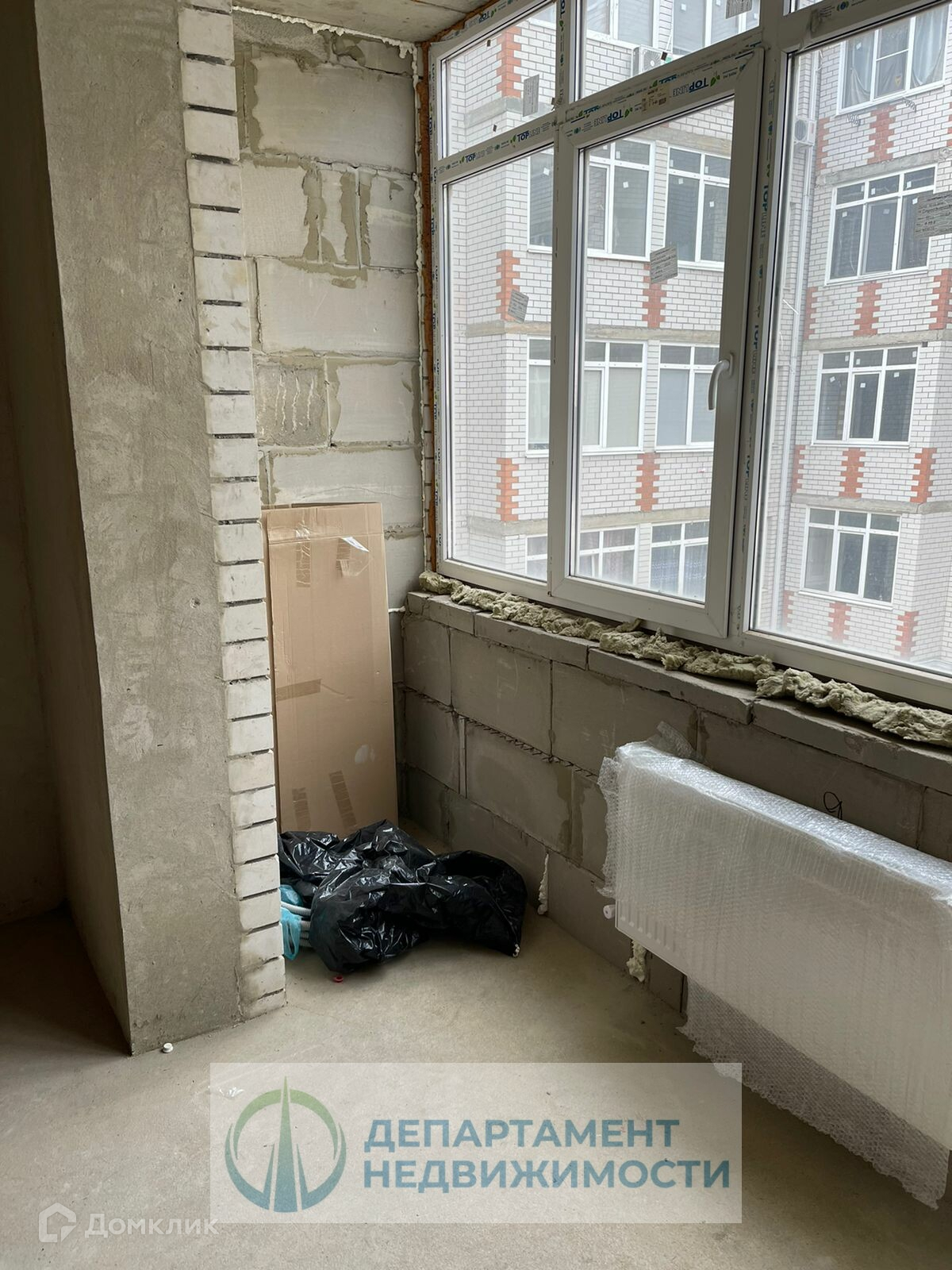 Сделана разводка электрики и коммуникаций, установлена новая входная дверь, есть радиаторы отопления, балкон застеклен.