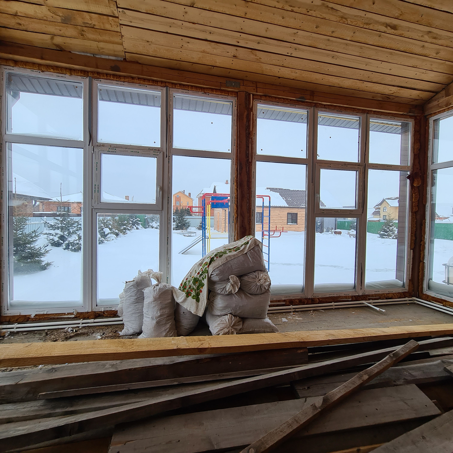 Дом построен с бруса 150х150, два слоя утепления каменной ватой+вентилируемый фасад и обшит металлосайдингом.