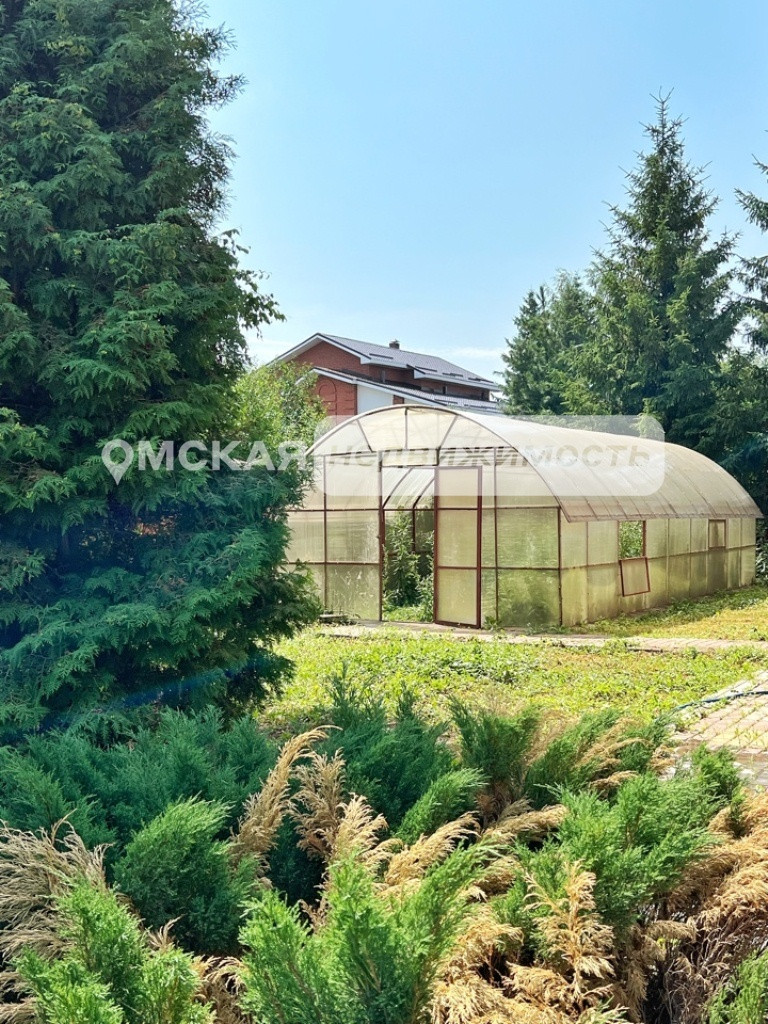 - во дворе множество декоративных и культурных деревьев и кустарников, большой ухоженный огород, теплица