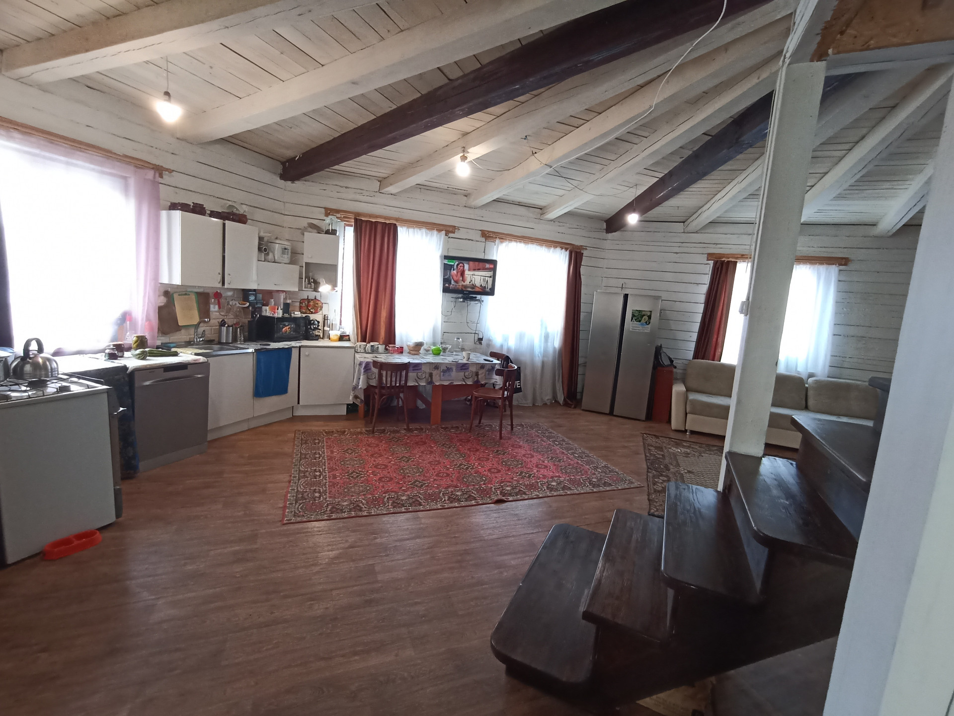 Загородный коттедж в живописном экологически чистом месте Омского района, в поселке Ростовка. Дом из бруса, с полноценным цокольным этажом, высота 3 м., на котором расположены котельная. На первом этаже расположены просторная гостиная, кухонная зона, спальня, ванная, пол линолеум. На втором этаже три спальни и ванная, ламинат. Дом построен по индивидуальному архитектурному проекту в 2003 году. Внутренняя отделка производилась с использованием качественных строительных материалов. Окна ПВХ. Дом подключен к центральным системам водо- и газоснабжения, центральная канализация. Участок 18 соток, гараж.