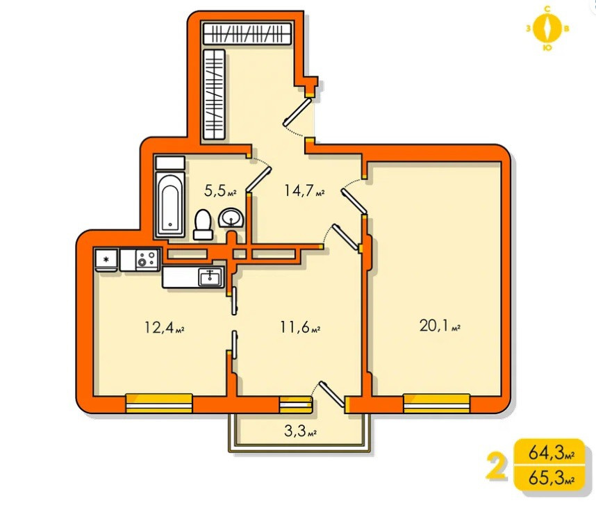 Общая площадь 64 м2
