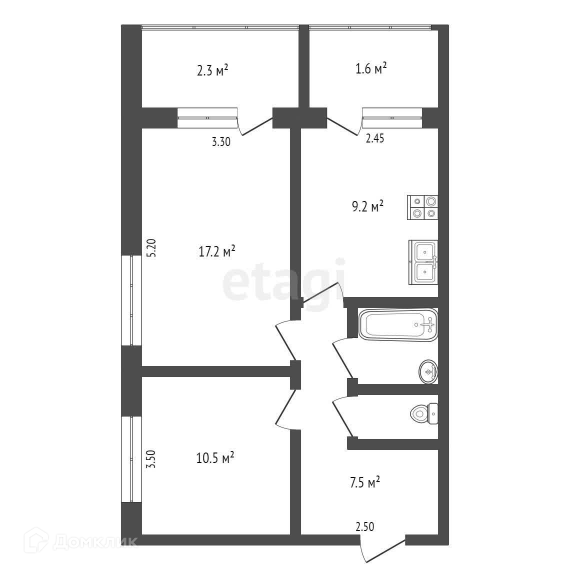 Общая площадь 48.5 м2