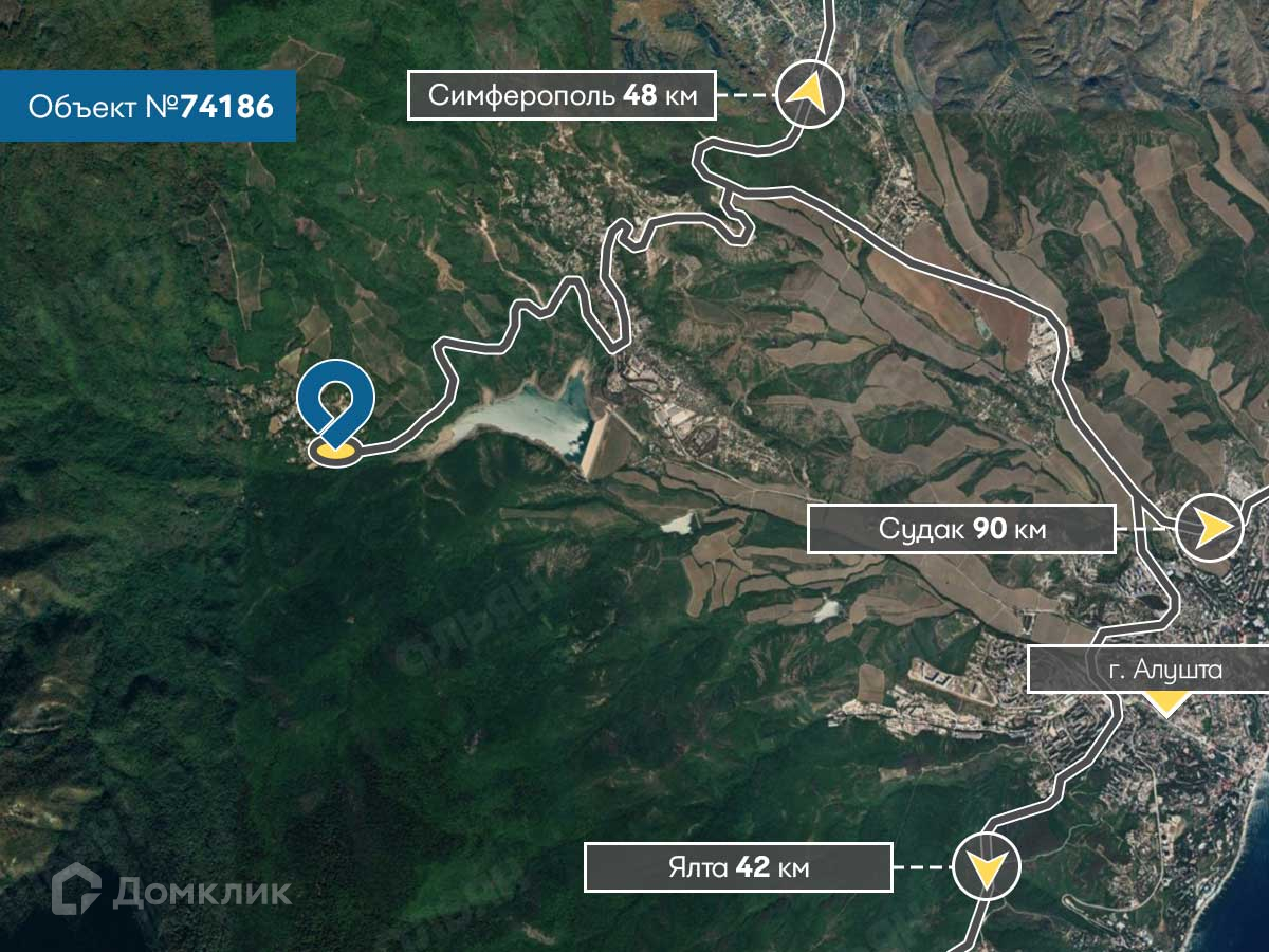 Локация: до центра города Алушта 9 км, магазин, остановка общественного транспорта 200 м, новый фельдшерско акушерский пункт.
