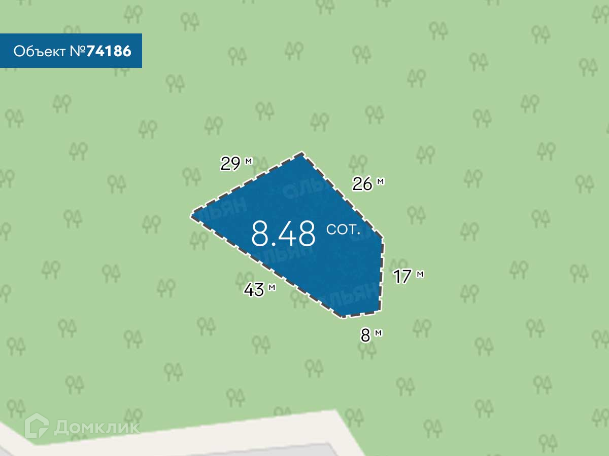 Площадь: 8,48 соток. Назначение земельного участка: индивидуальное жилищное строительство (ИЖС).